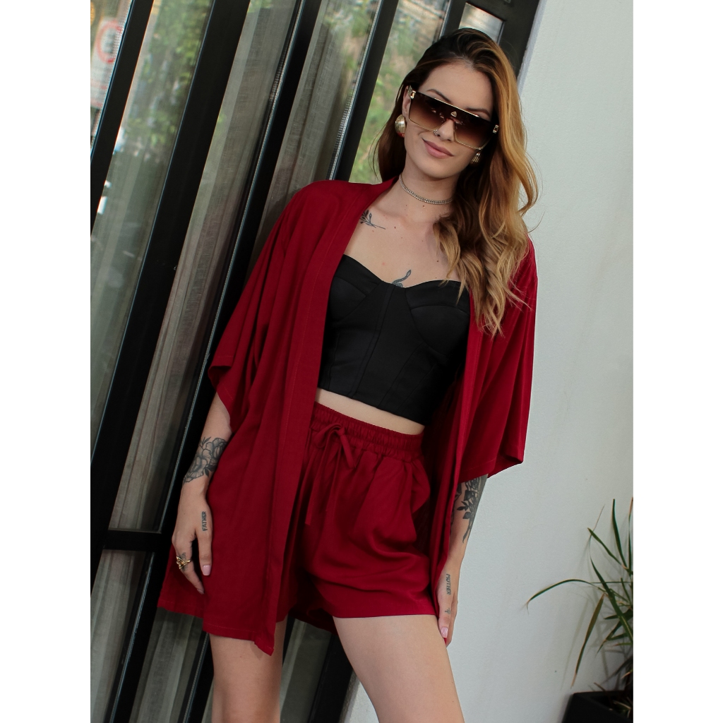Oito W Modas Conjuntos 2 Pecas Kimono e Shorte Tecido viscolinho Verao 2024 conjunto feminino