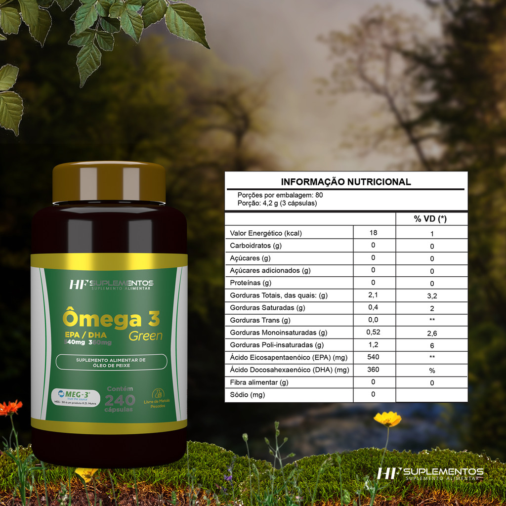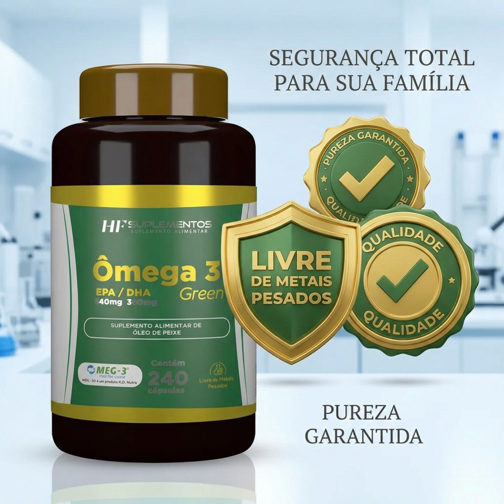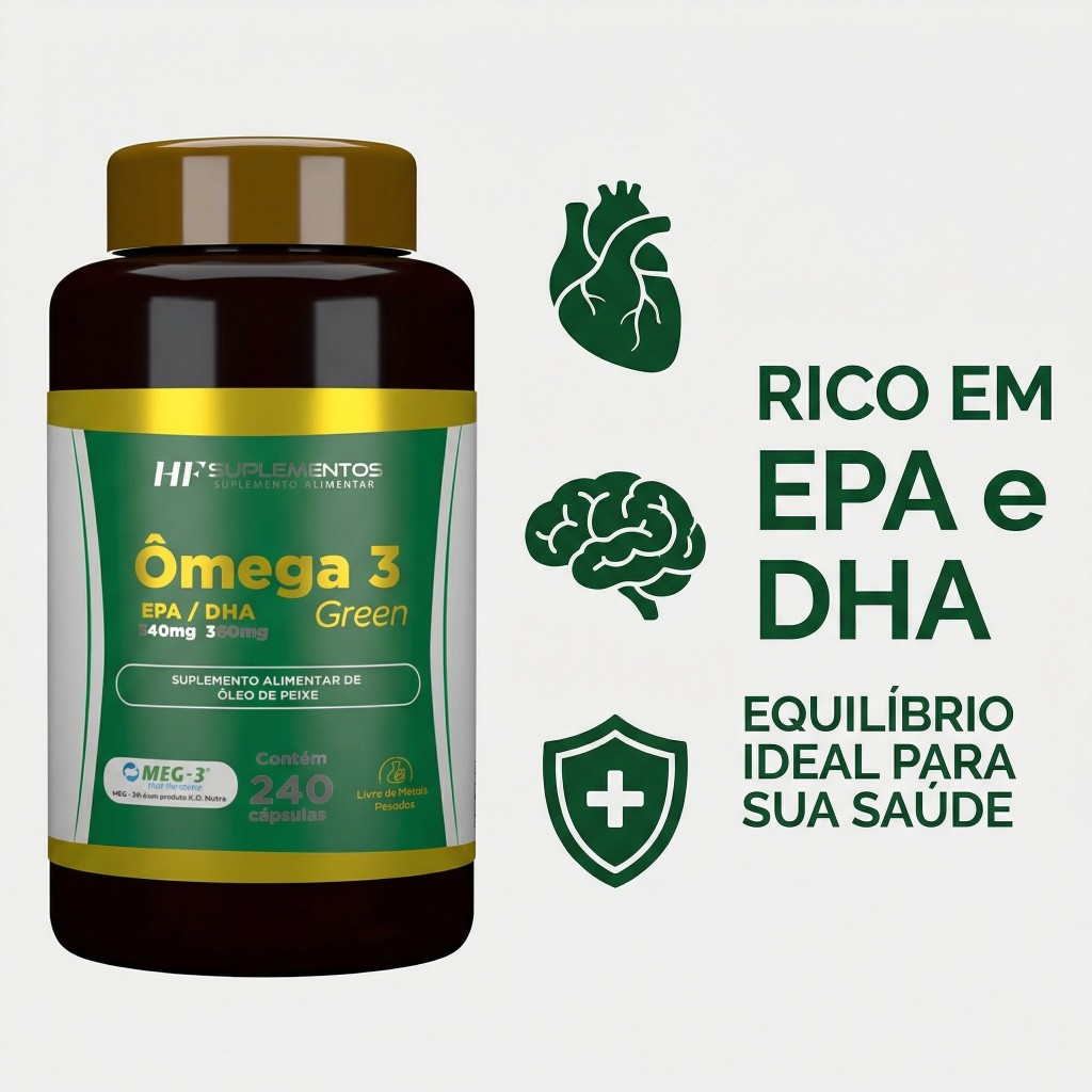 Omega 3 HF Suplementos 240 Caps Óleo de Peixe Puro EPA DHA Concentrado Coração e Saúde Vida