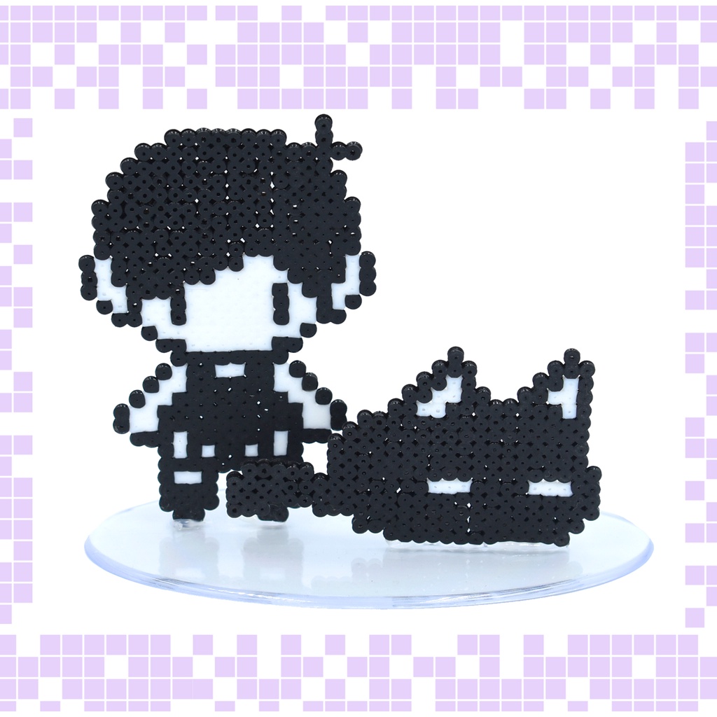 Omori e Mewo Figura Pixel Art Bead Perler Acompanha Base