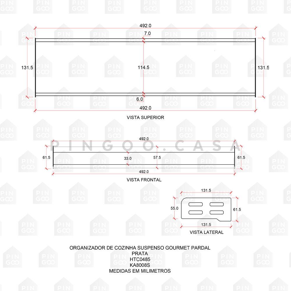 Organizador De Cozinha Suspenso Gourmet Pardal Pingoo - Dourado