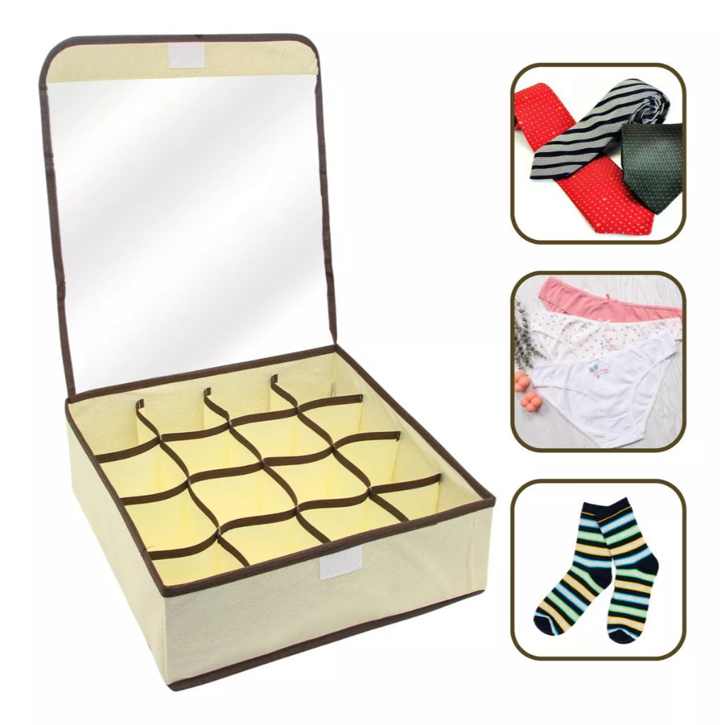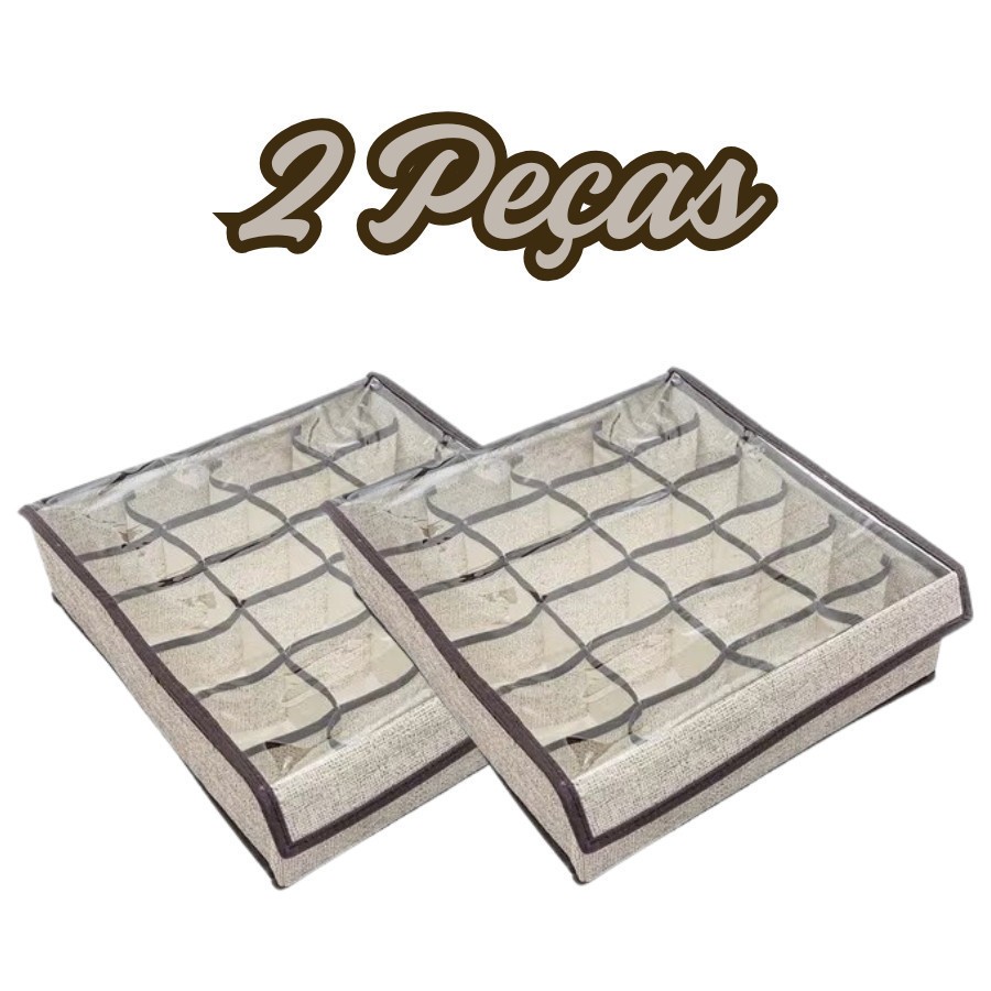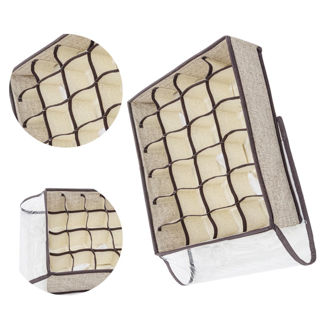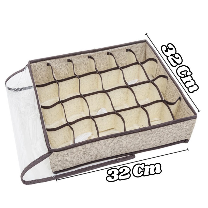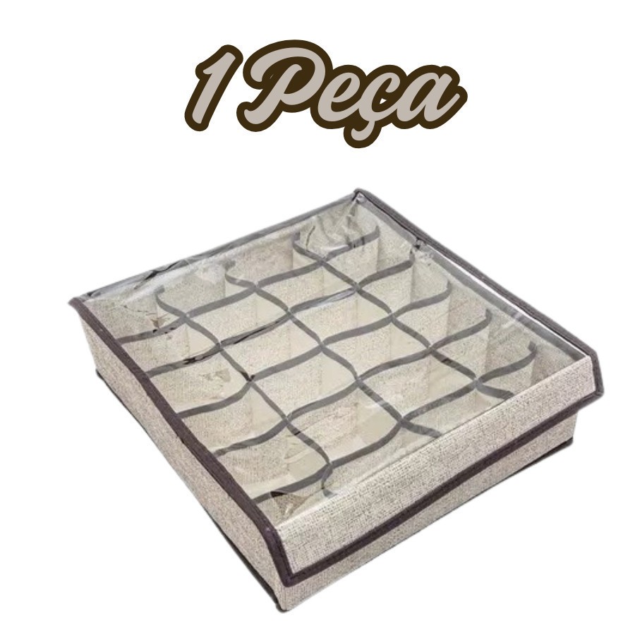 Organizador Dobrável 24 Divisórias Com Tampa Transparente Anti Poeiras Para Gavetas E Guarda Roupas