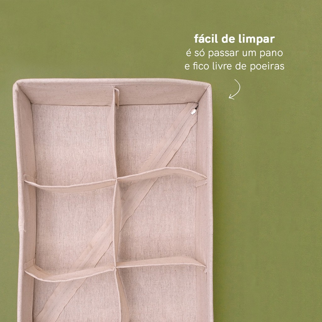 Organizador Dobrável com 6 Divisórias Quadradas Linho - Oikos
