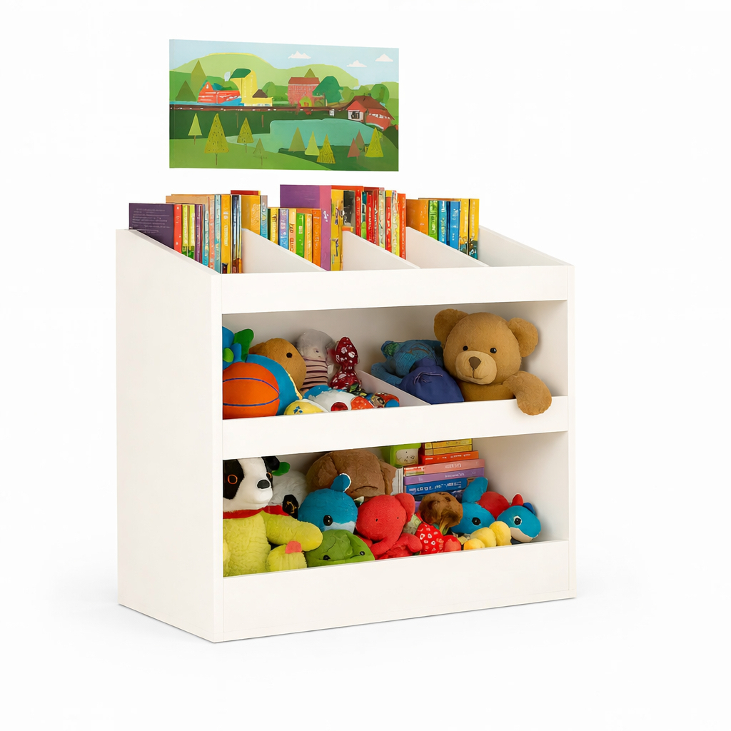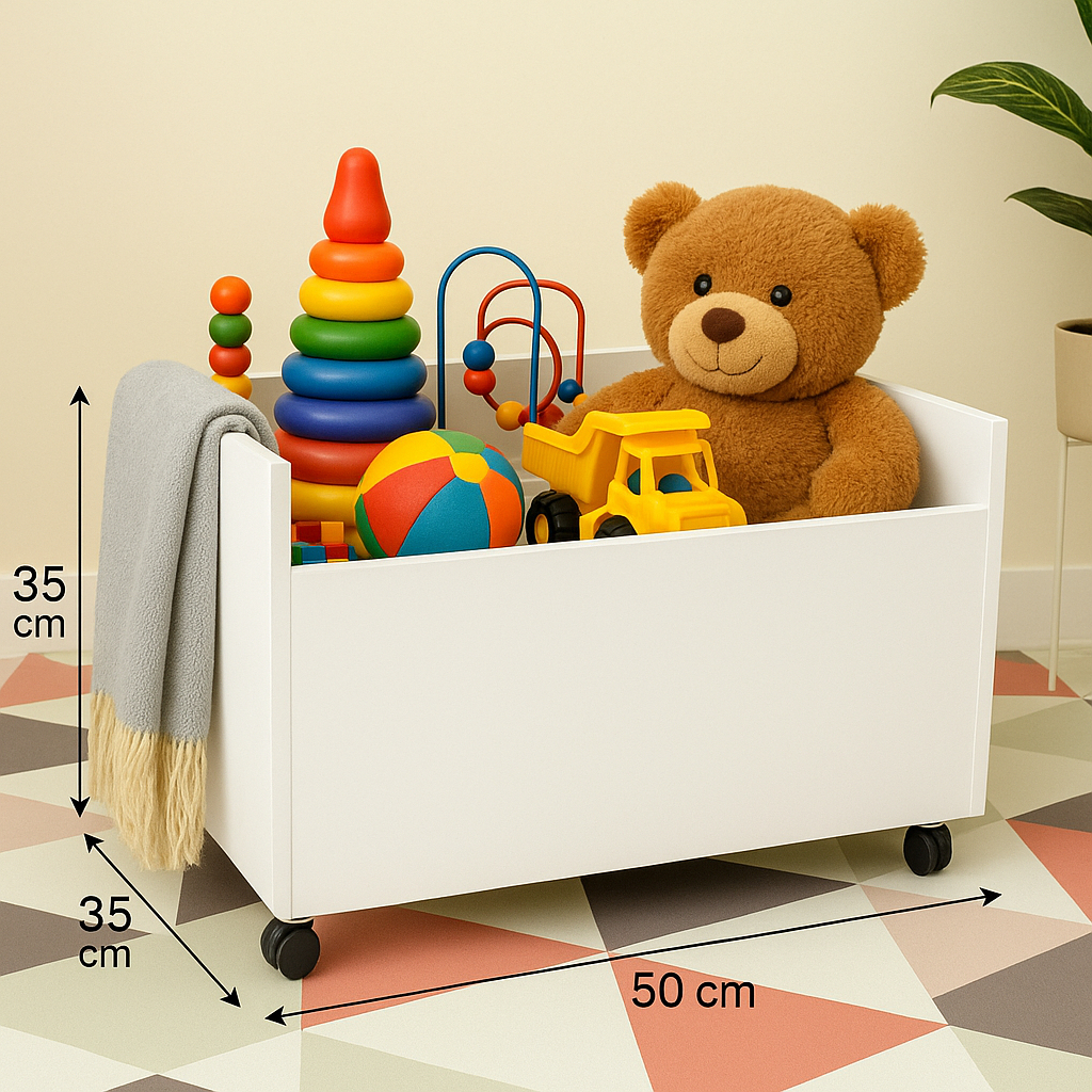 Organizador Infantil MDF Branco Brinquedos e Livros – Caixa com Rodinhas ou Porta Brinquedos