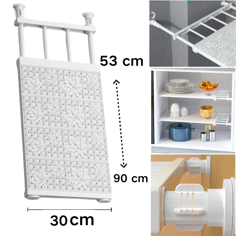 Organizador Prateleira Inteligente Retrátil portátil 53 a 90 cm Aço inoxidável Branca Extensível Largura 30cm