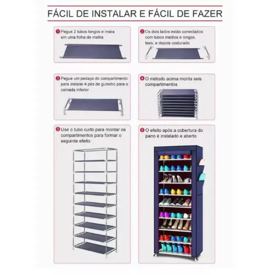 Organizador de Calçados 9 Níveis Para até 54 Pares De Sapatos Estrutura Desmontável