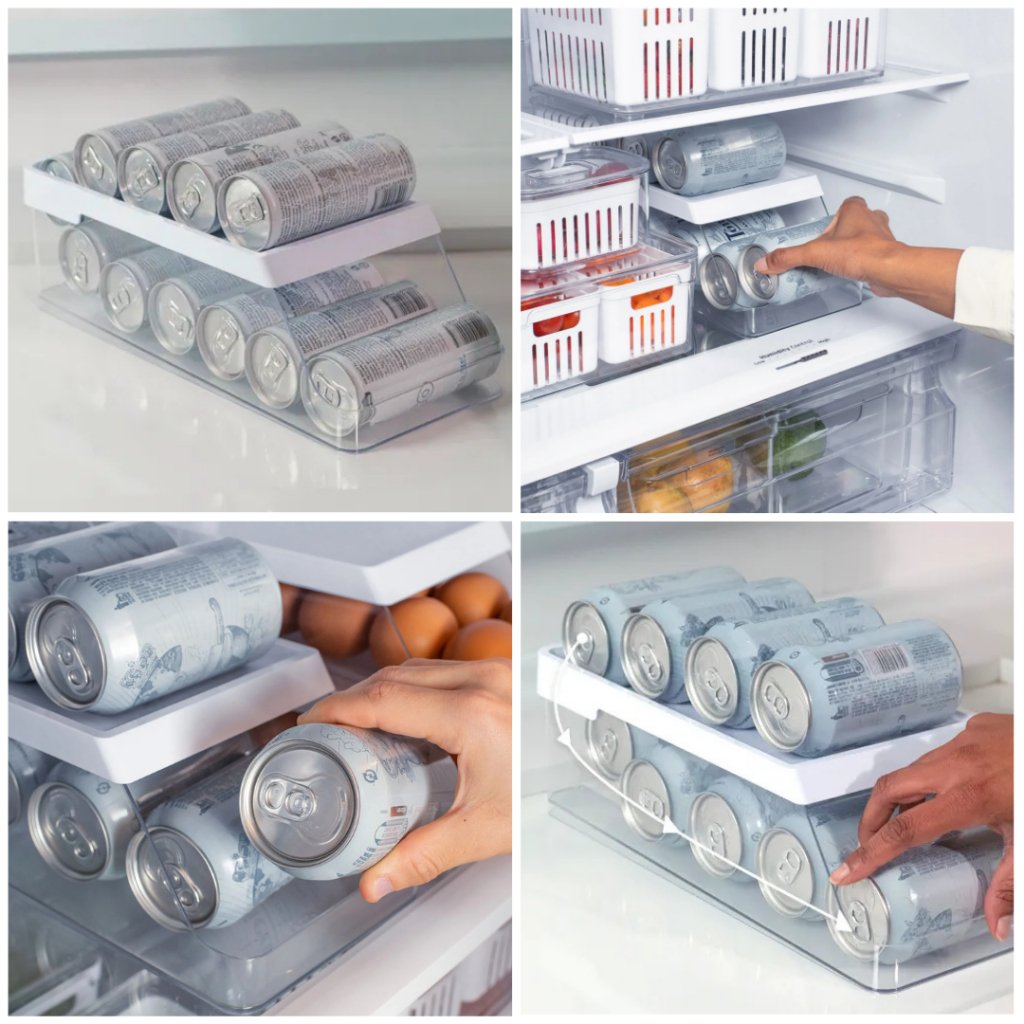 Organizador de Latas Geladeira Armário 9 Unidades Com Rolagem Multiuso Clear Fresh Ou