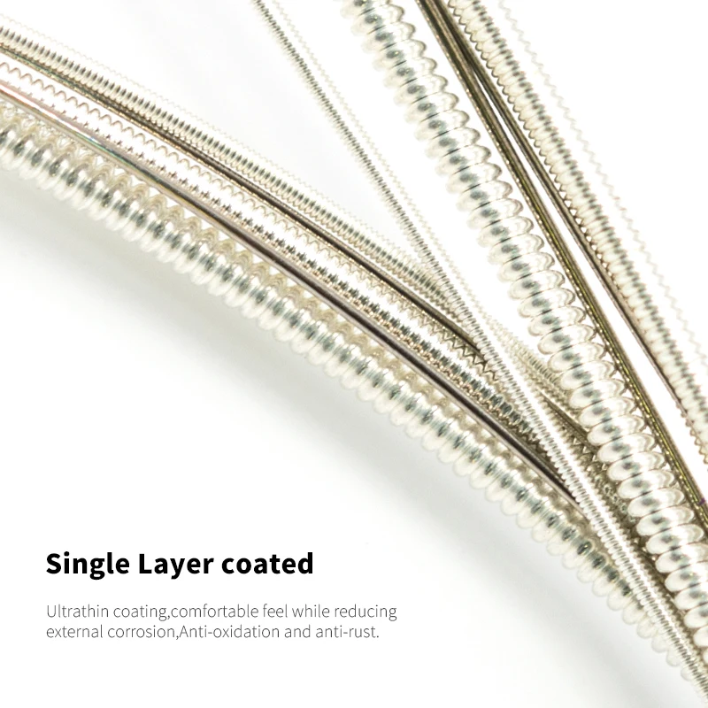 Orphee TX620-S Cordas para Violão Acústico Médio Aço Carbono Núcleo Hexagonal Ferida Banhada a Prata Acessórios para