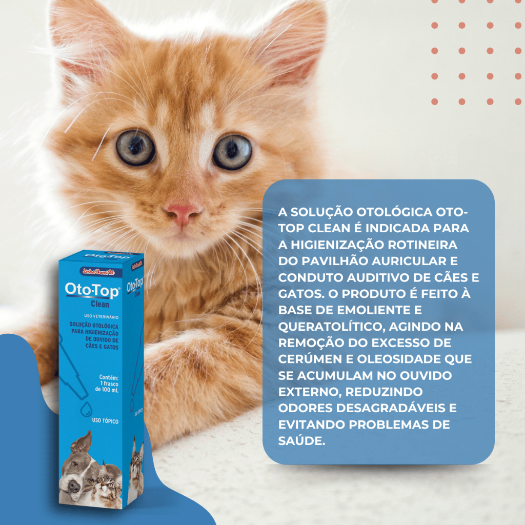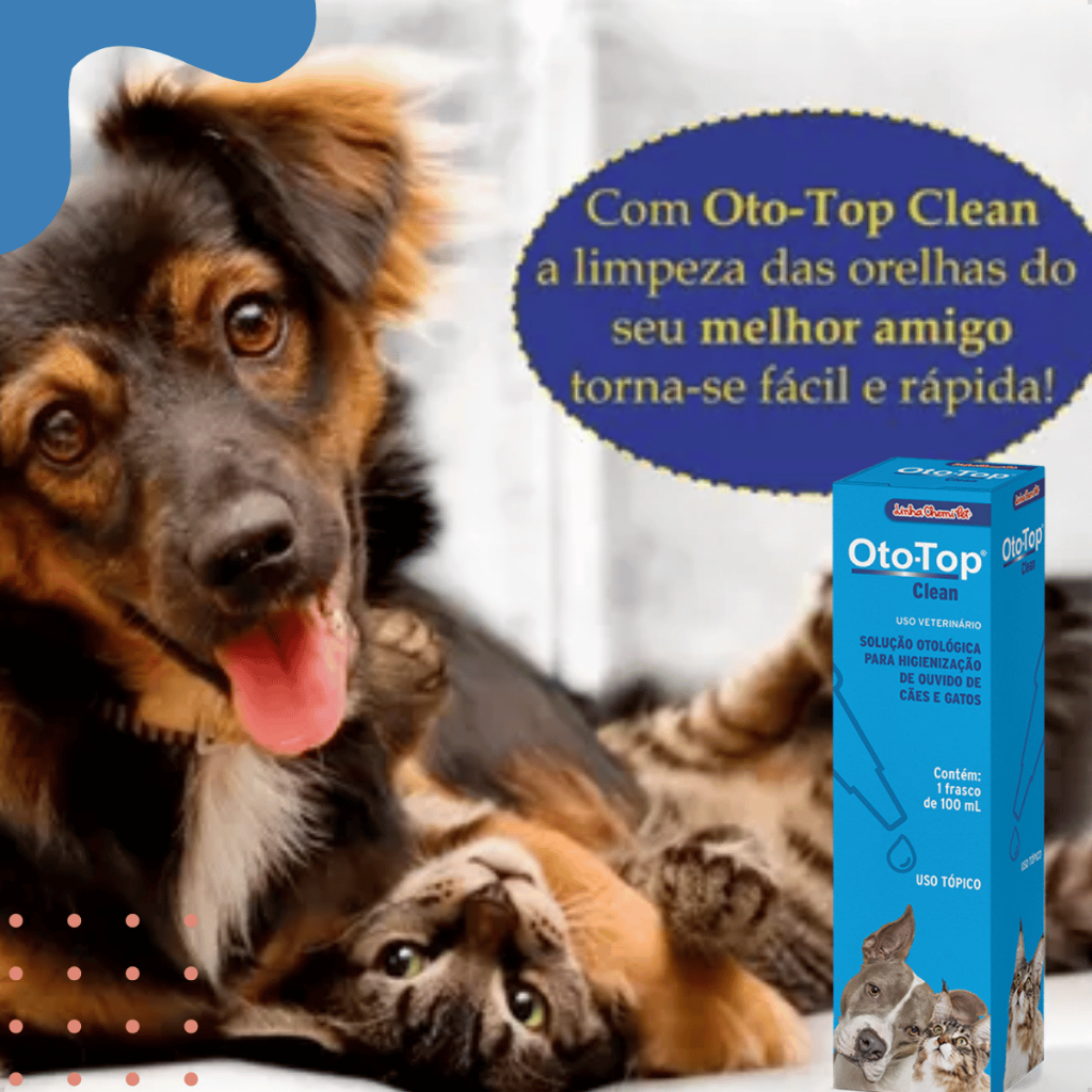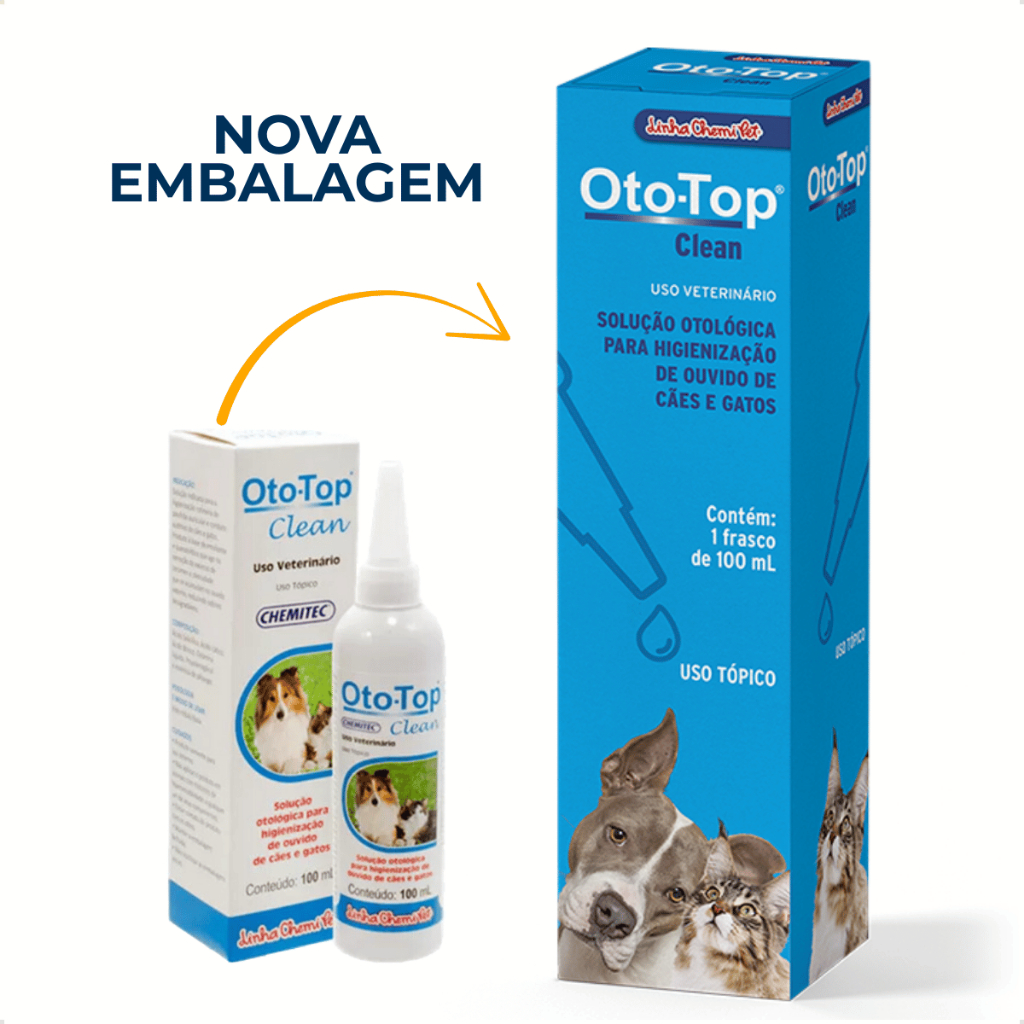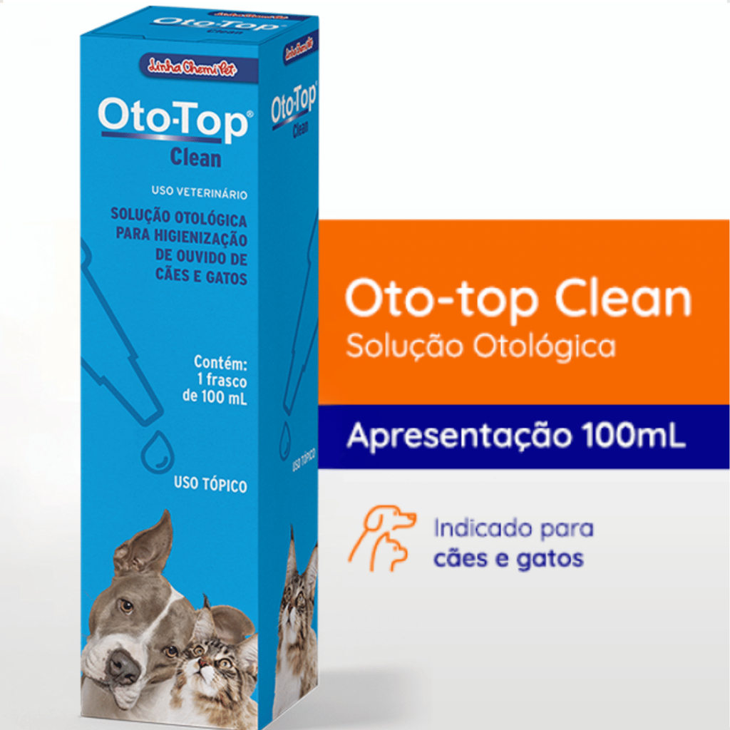 Oto top Clean Limpeza Otológica Cães Gatos 100ml Chemitec