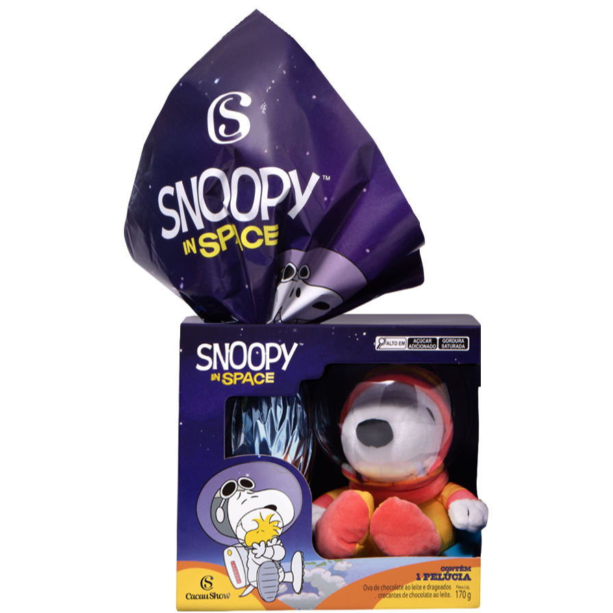 Ovo de Páscoa Cacau Show Chocolate ao Leite Pelúcia Snoopy Astronauta 170g