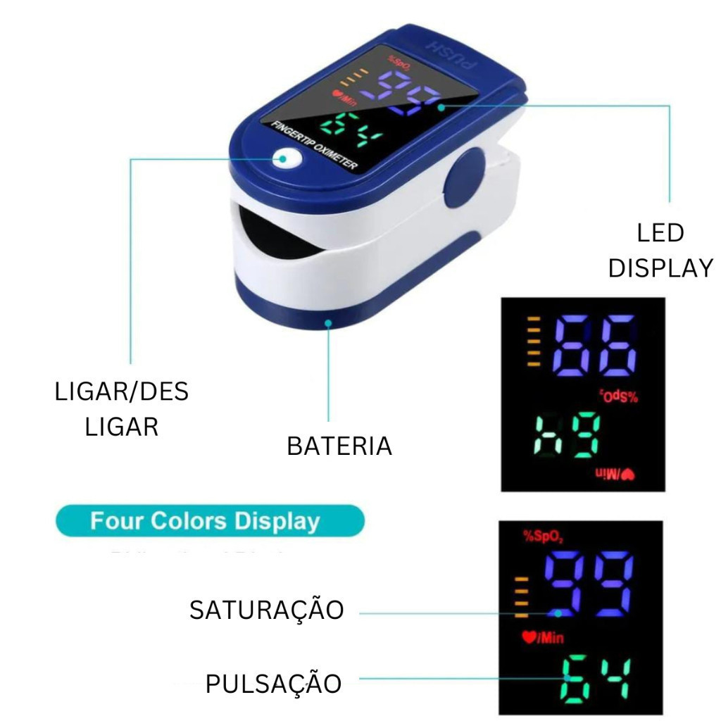Oximetro De Dedo Digital Medidor De Saturação De Oxigênio No Sangue