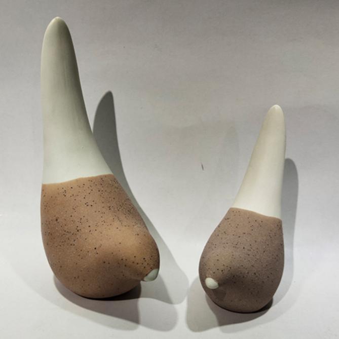 Pássaro Duo Bege Decoração Enfeite Escultura 14cm