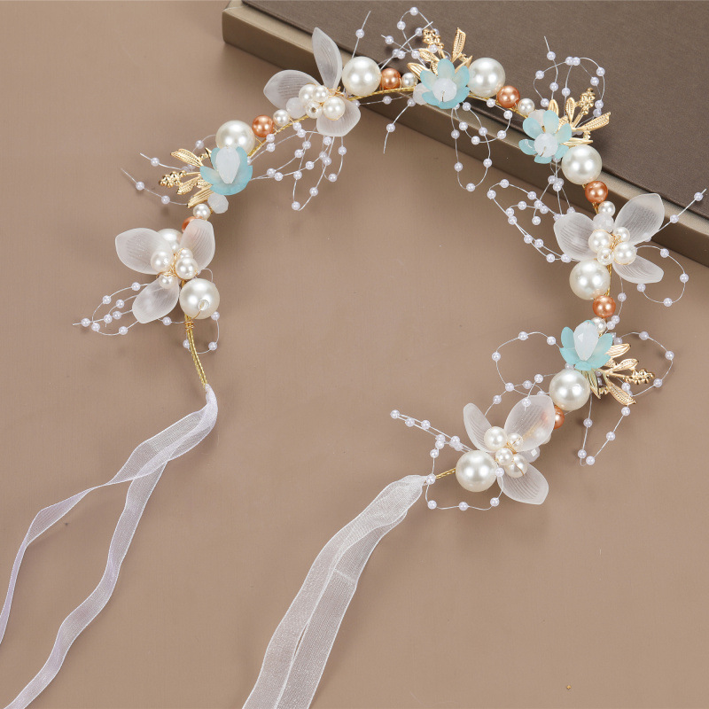 Pérola Laço Flor Coroa Meninas Festa De Aniversário Bandana Fotografia Acessórios Para O Cabelo Princesa Vibe Estética R