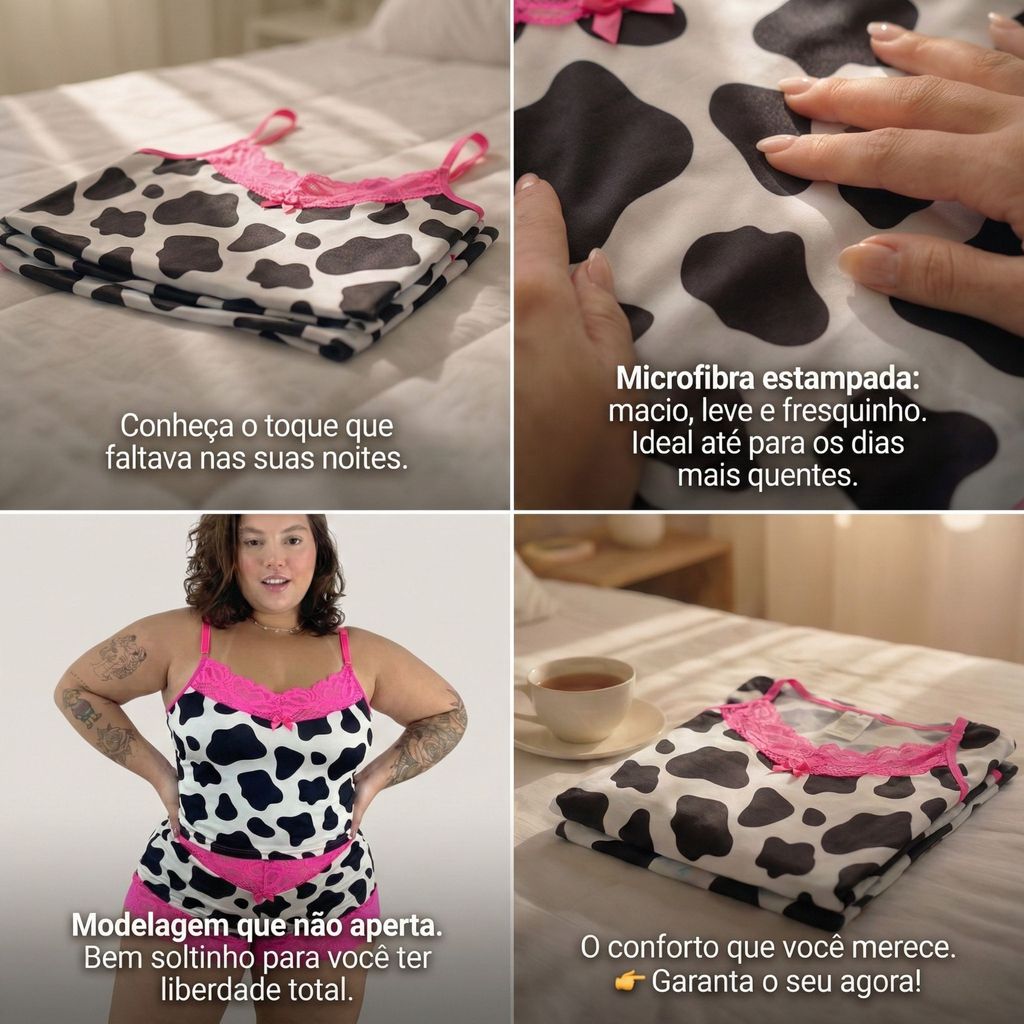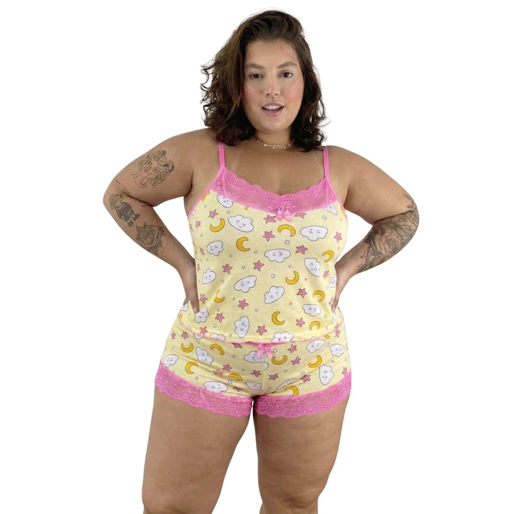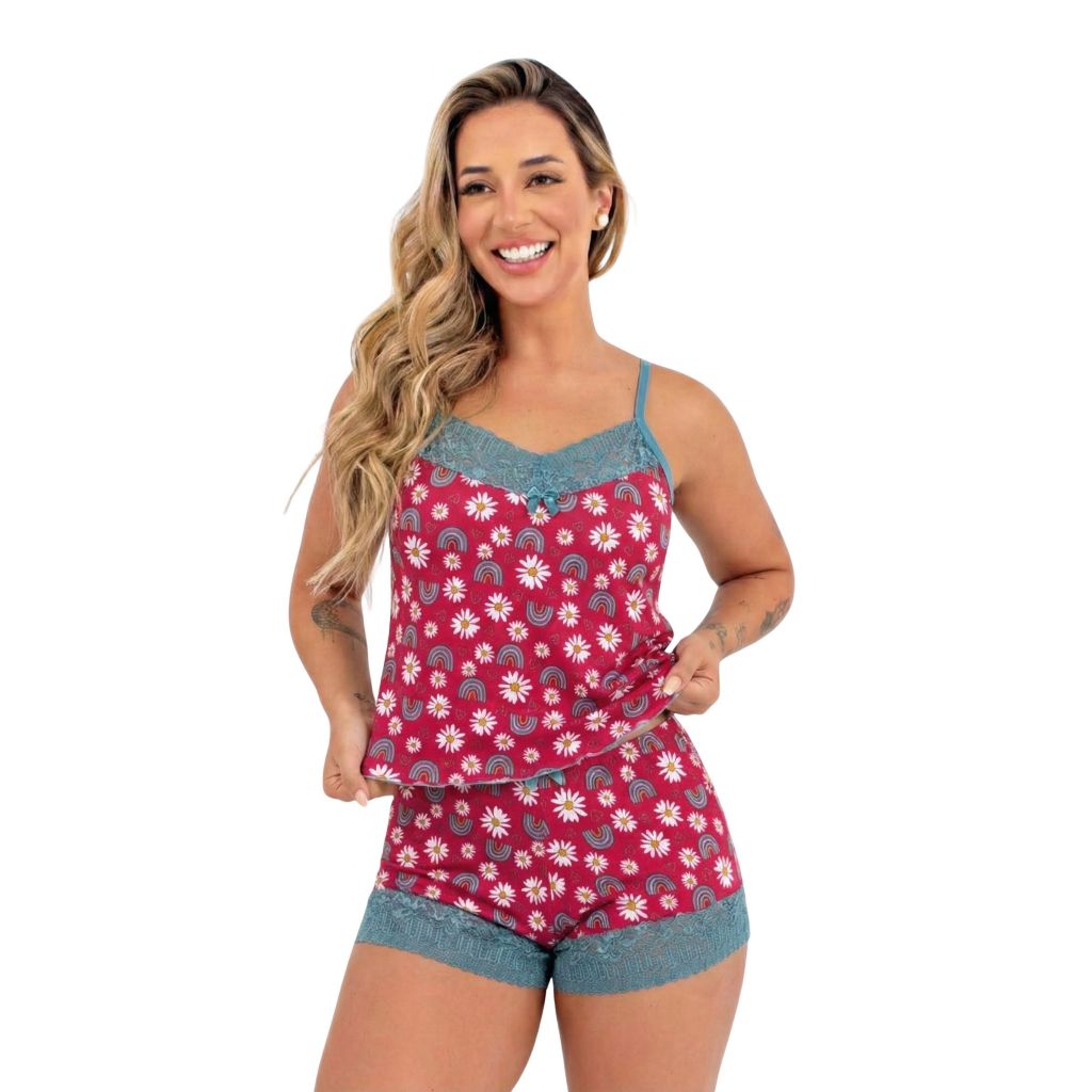 Pìjama Baby Doll Shortinho Estampado C/ Renda Roupa de Dormir Fresquinha