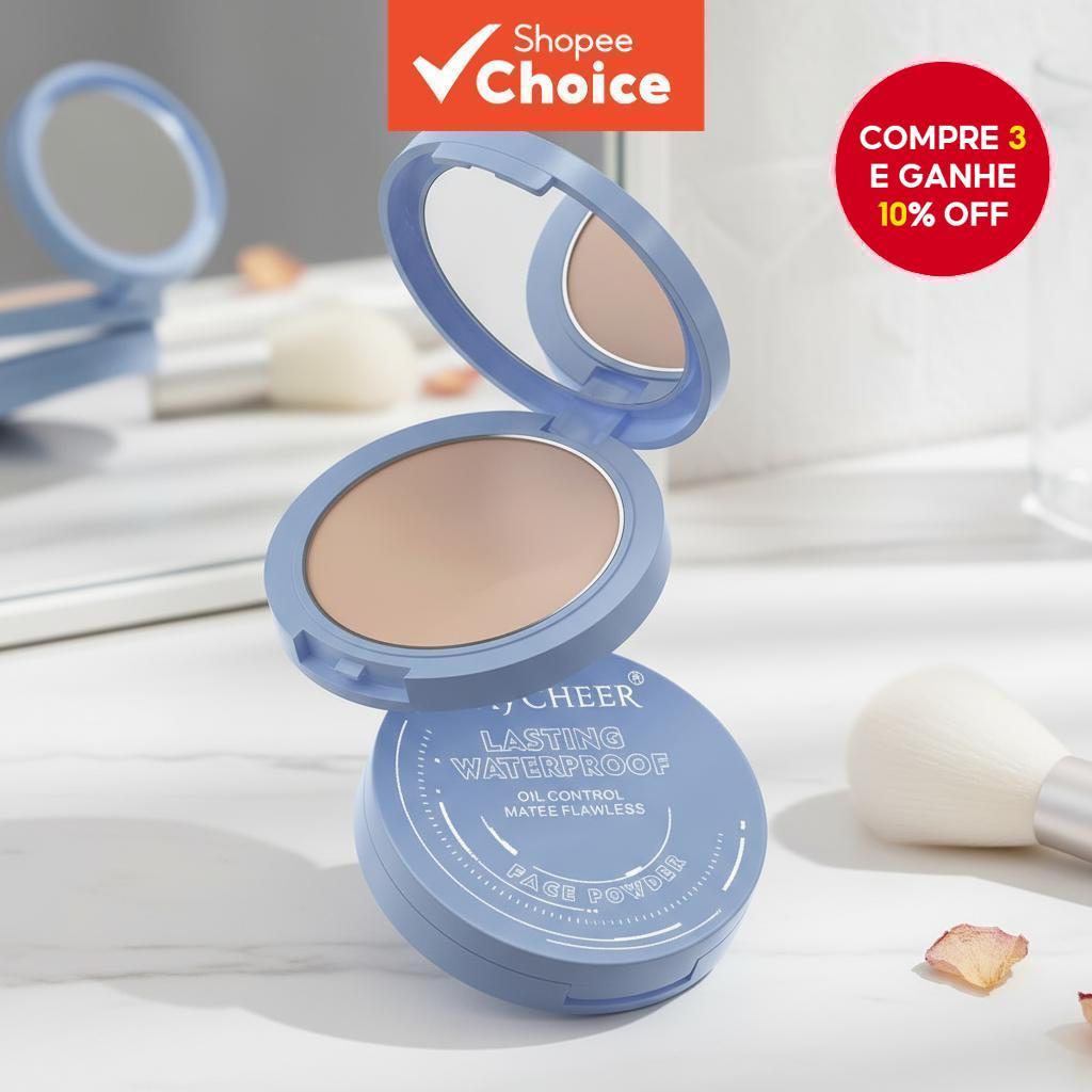 Pó Facial Matte de Longa Duração Controle de Oleosidade Maquiagem à Prova d'Água Com Espelho e Puff [Suave, Leve]