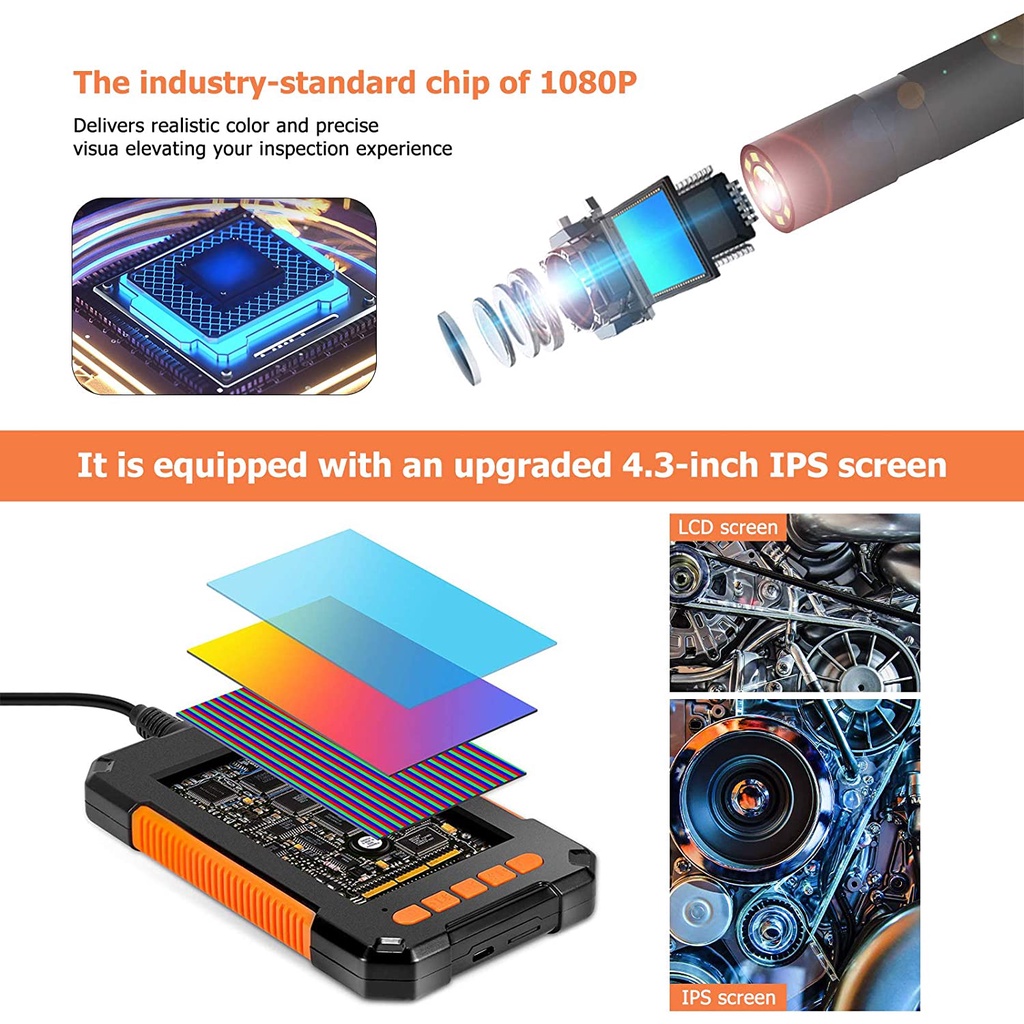 P40 8Mm Câmera De Inspeção Digital De Lente Única 1080P 4.3 " IPS LCD Com 8 Leds Para Controle De Esgoto De Carro