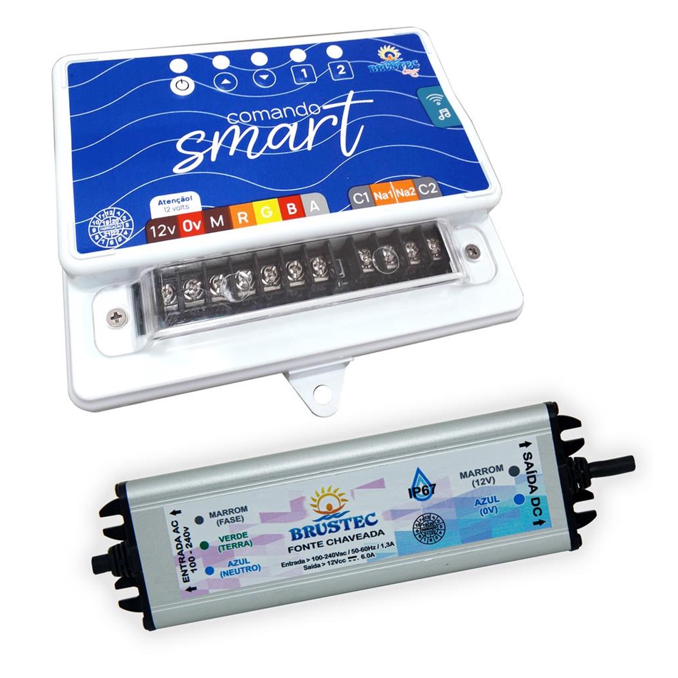 PAINEL LED RGB SMB 72W + FONTE 12V 3A BLINDADA 36W - BRUSTEC Para Piscinas