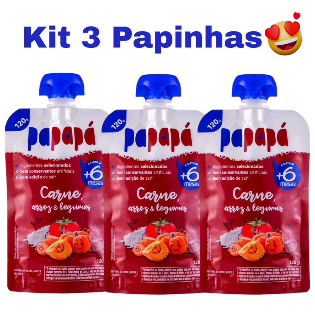 PAPAPA KIT 3UN - 1 SABOR - PAPINHA ORGANICA COM CARNE 120G