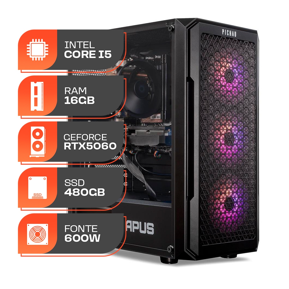PC Gamer Titan Pro, Intel i5-12400F, GeForce RTX 5060 8GB, 16GB DDR4, SSD 480GB, 600W 80 Plus
