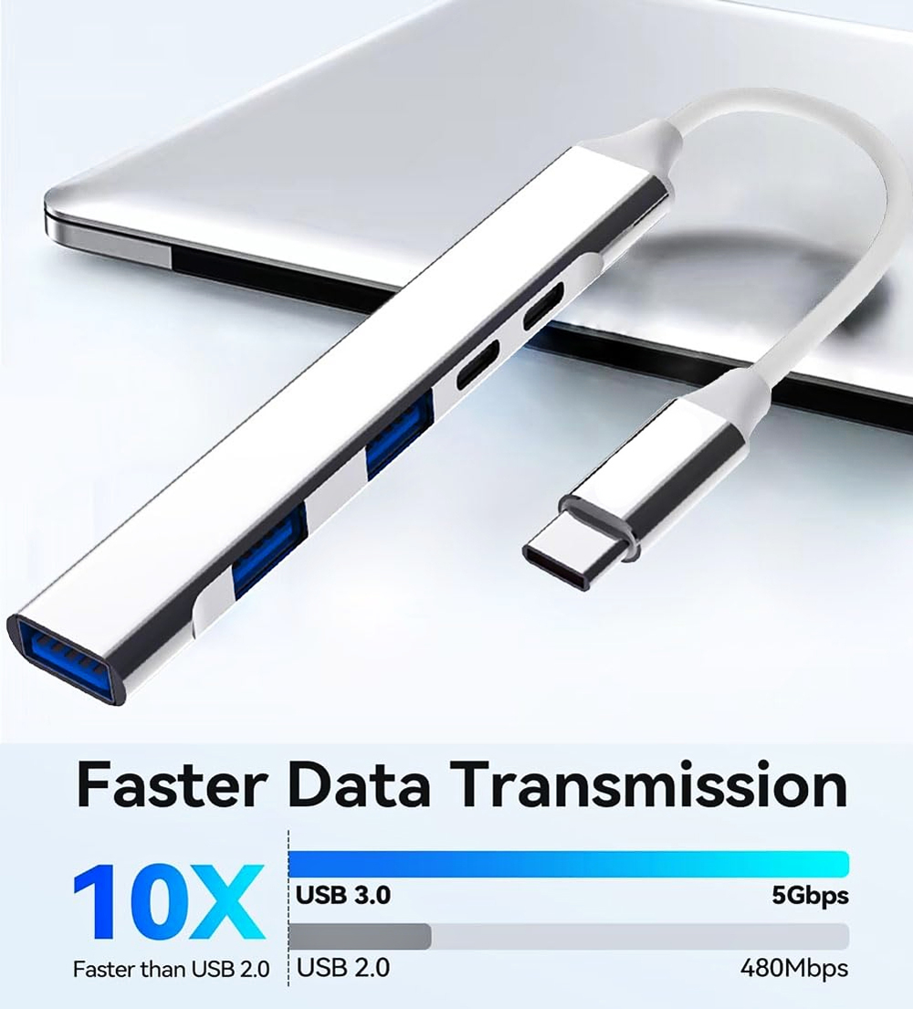 PD Charge USB C HUB Tipo C 3.0 Alumínio 5 em 1 Extensão Rápida Transferência de Dados Dispositivos Tablet Computador PC