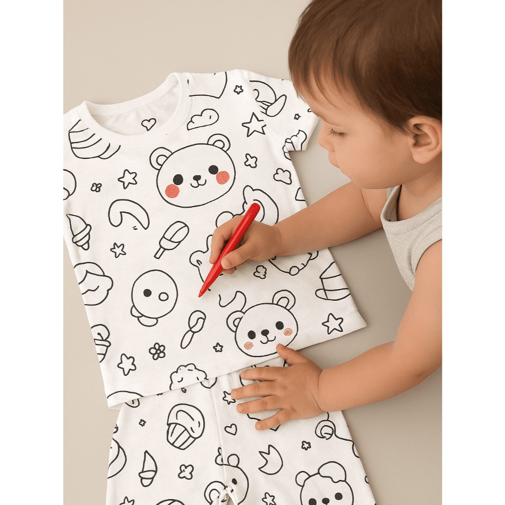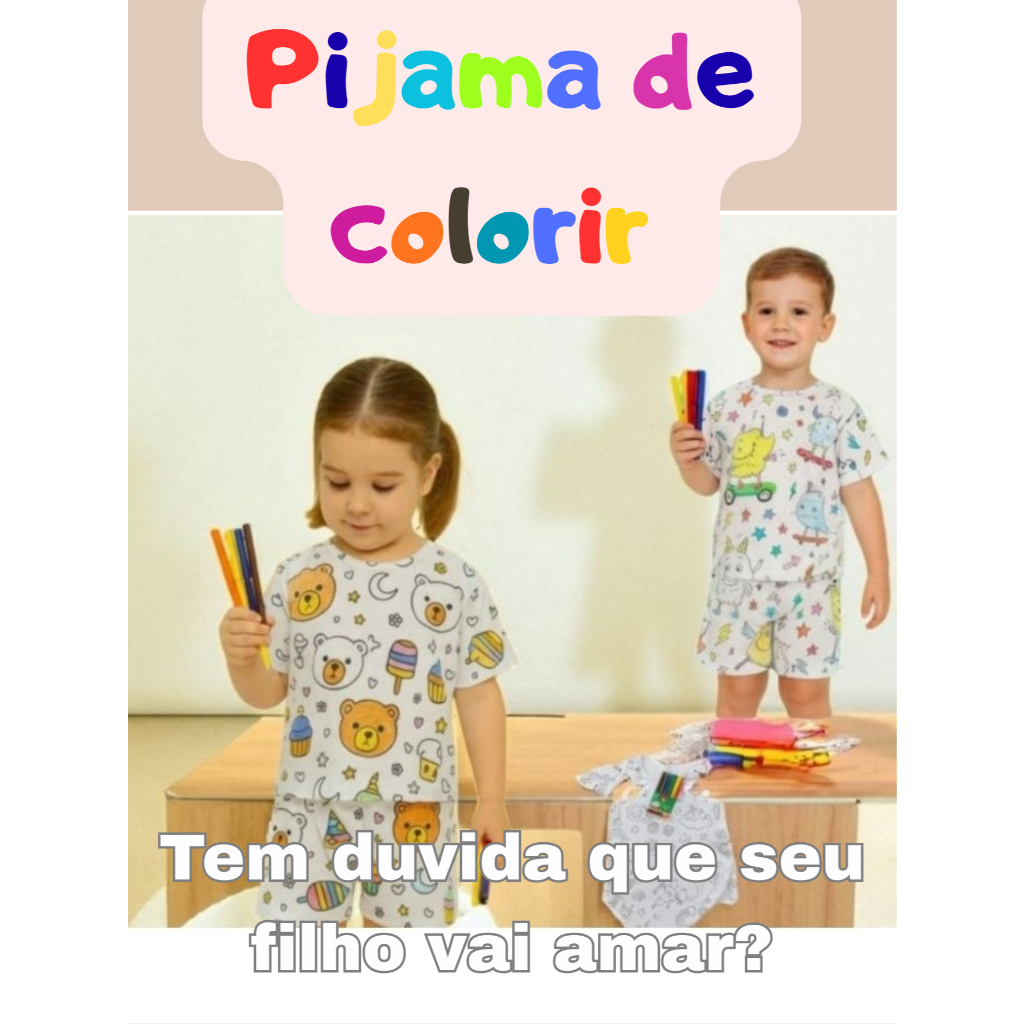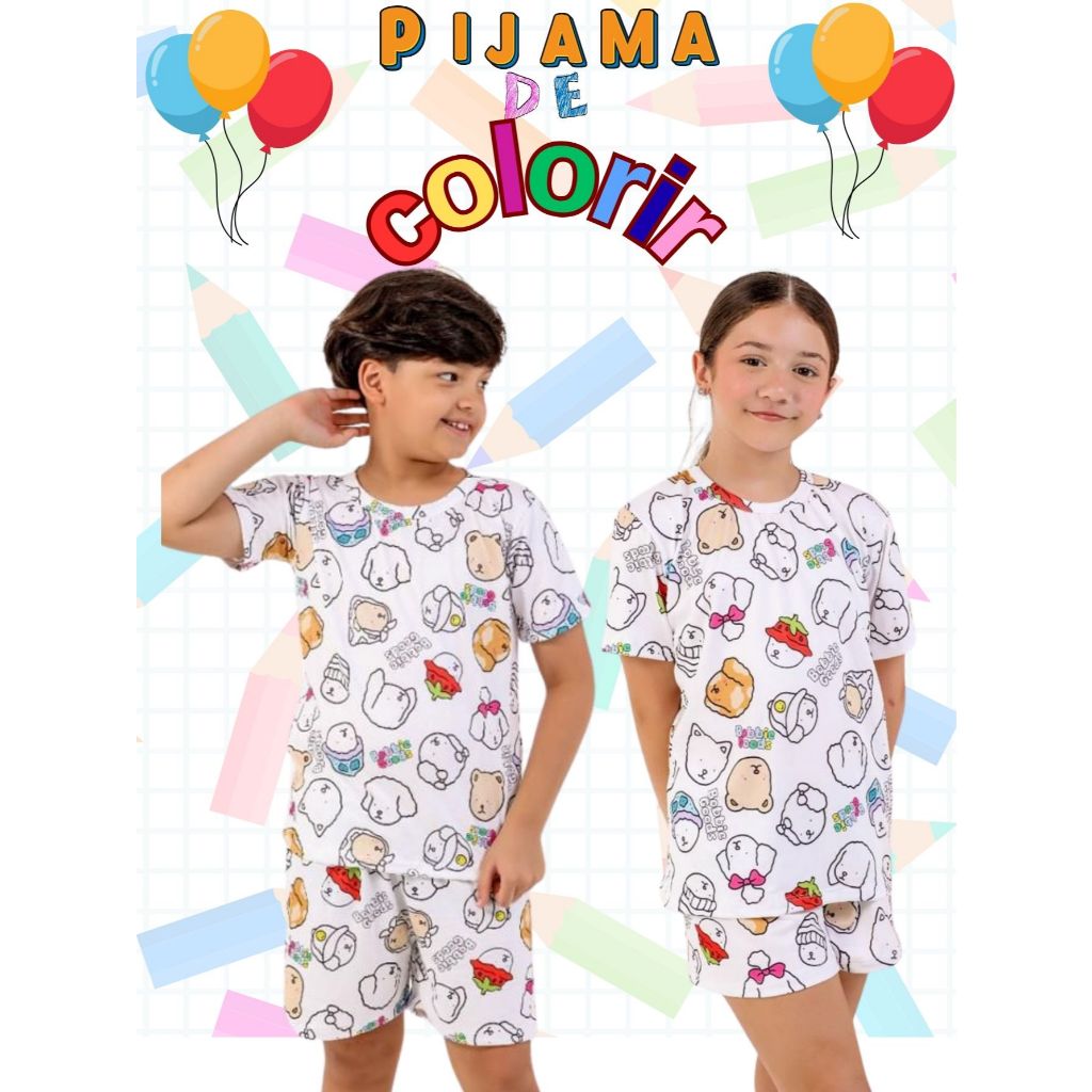 PIJAMA INFANTIL VERÃO COM CANETINHA LAVÁVEL CONJUNTO INFANTIL PARA COLORIR