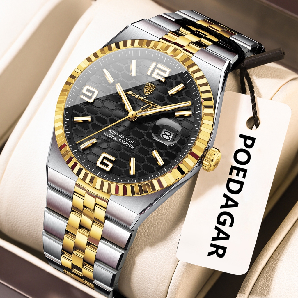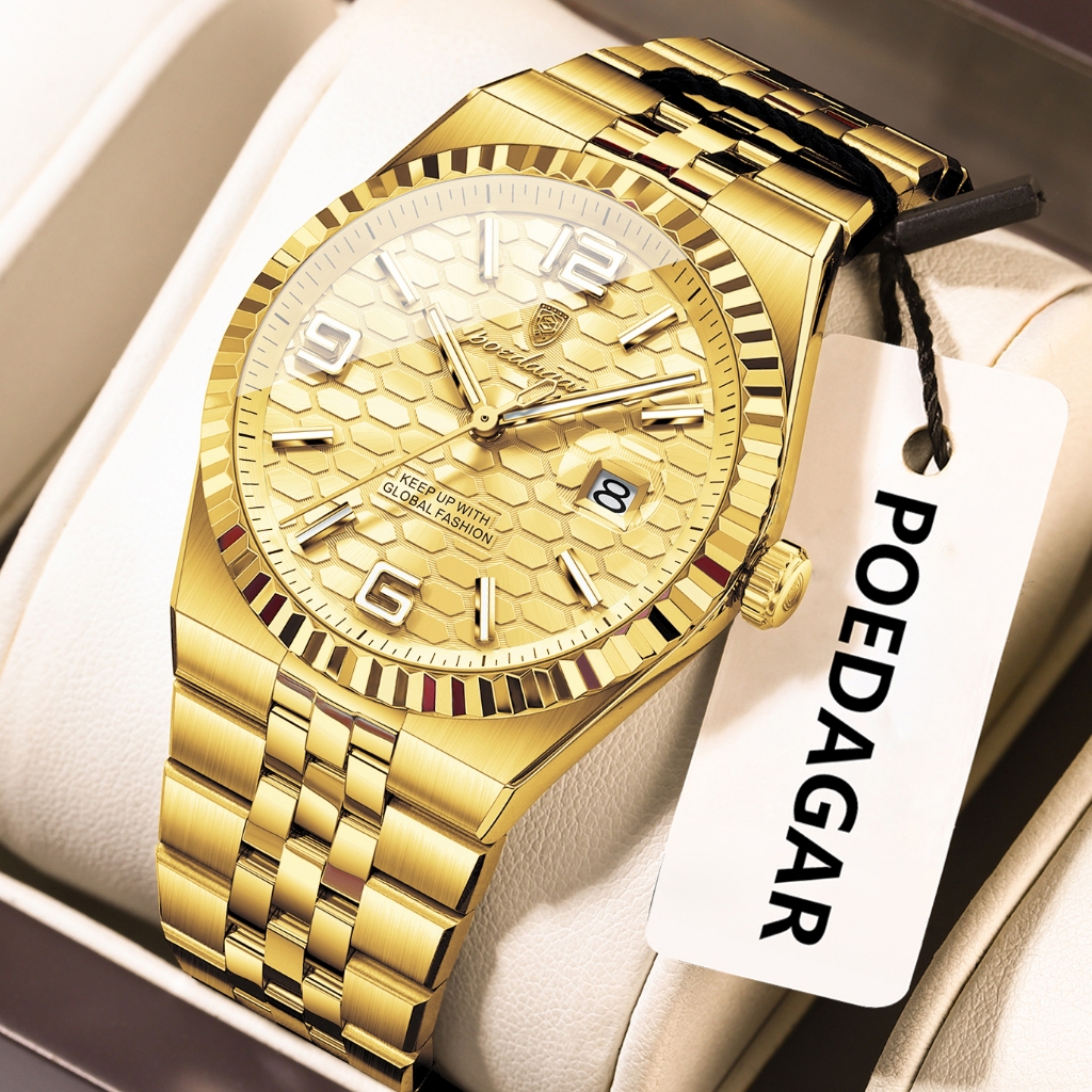 POEDAGAR Relógios Masculinos De Luxo Negócios Aço Inoxidável Relógio De Pulso Data À Prova Dwaterproof Água Luminosa Ori