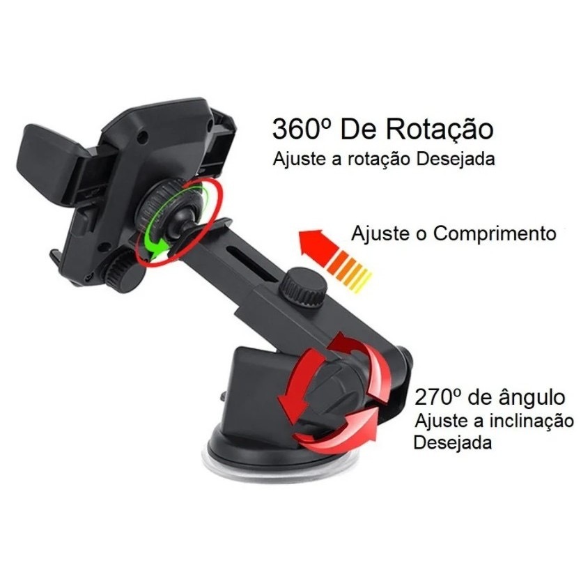 PROMOÇAO!Suporte Celular Gps Carro Veicular Trava Automática Resistente Ajuste Rotação Base