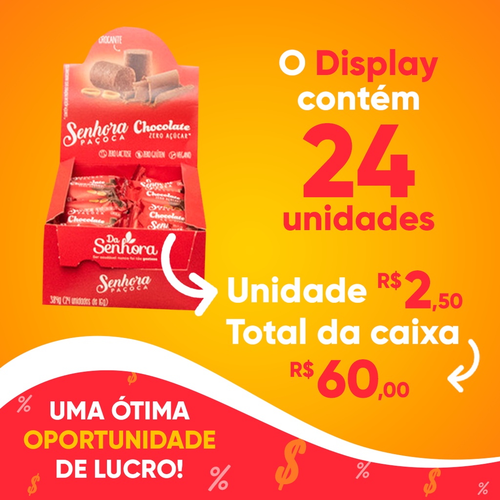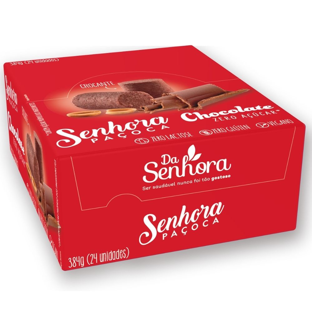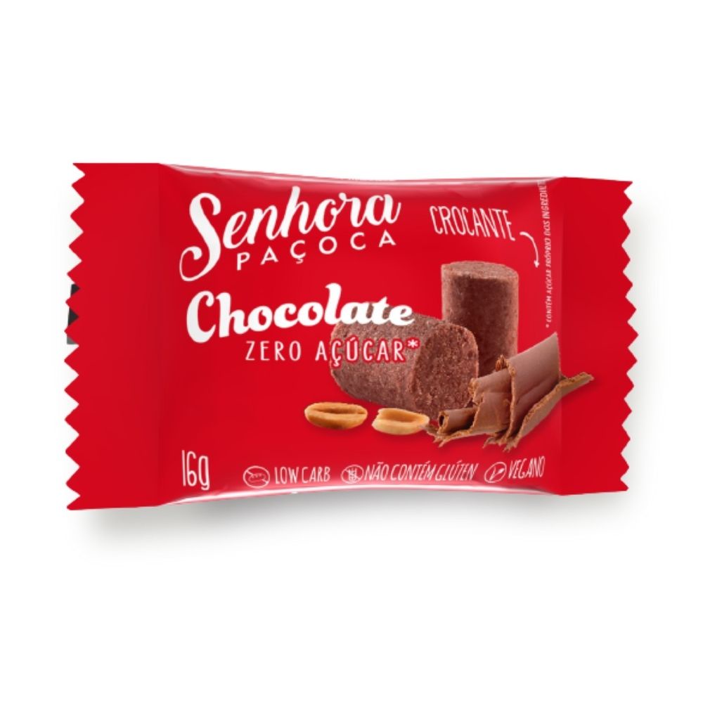 Paçoca Chocolate Zero Açúcar Vegano Sem Lactose Caixa C/ 24u