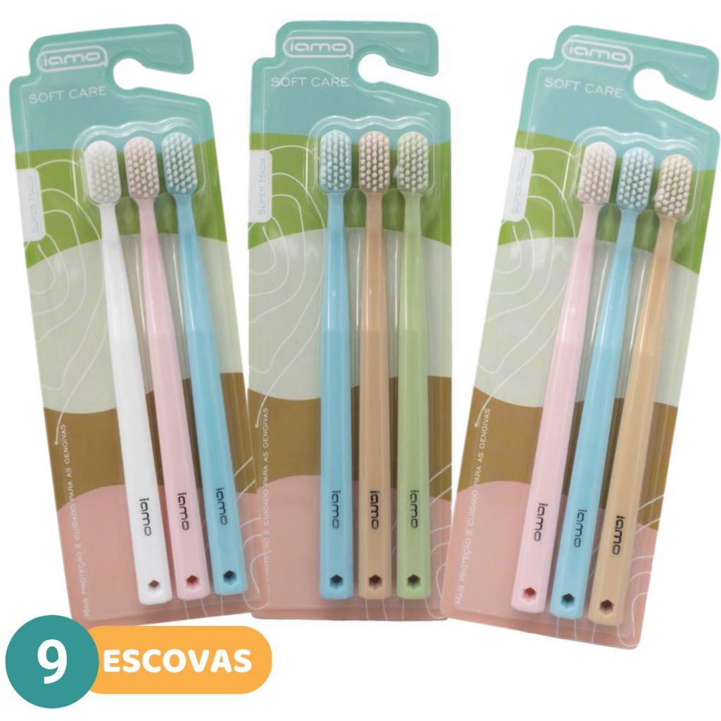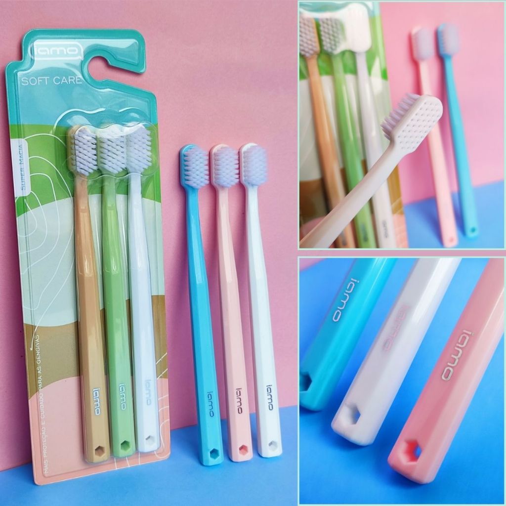 Pack Escovas Dentais Ultra Macias Tons Pasteis Soft Care