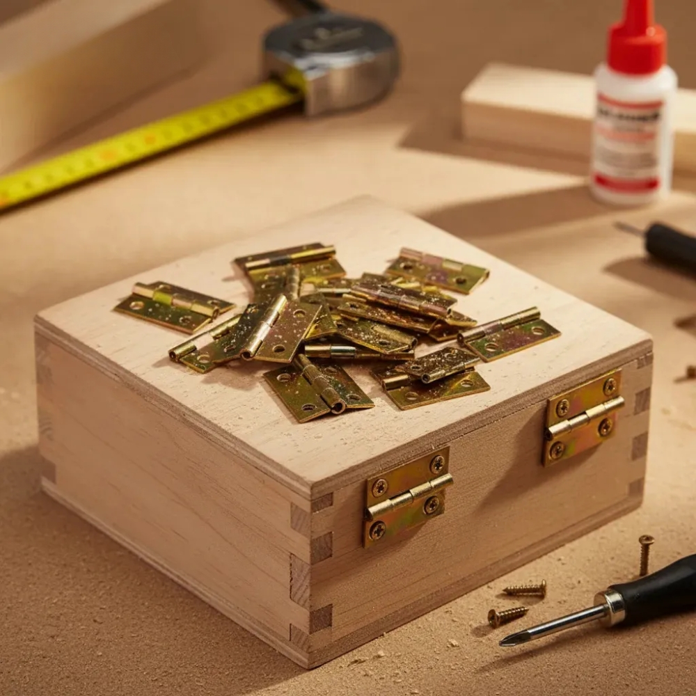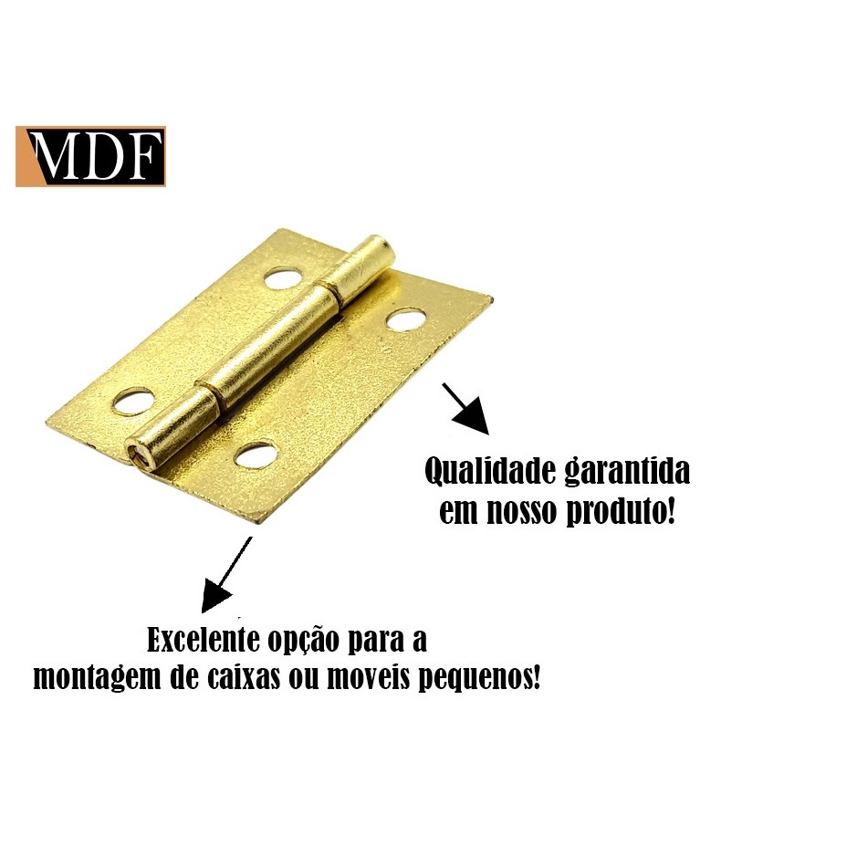 Pacote 100 Dobradiça Dourada para Caixa de Madeira 2x2,5cm Artesanato