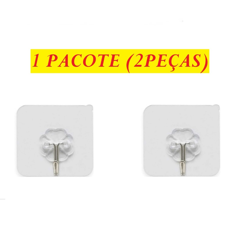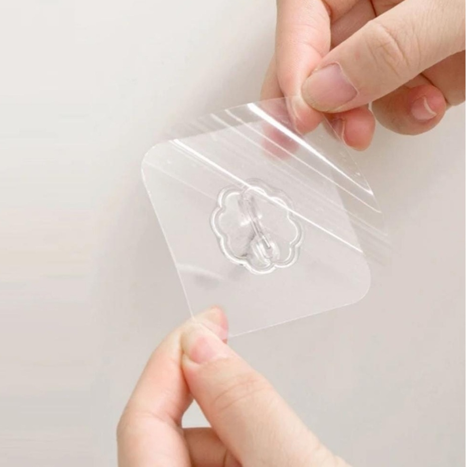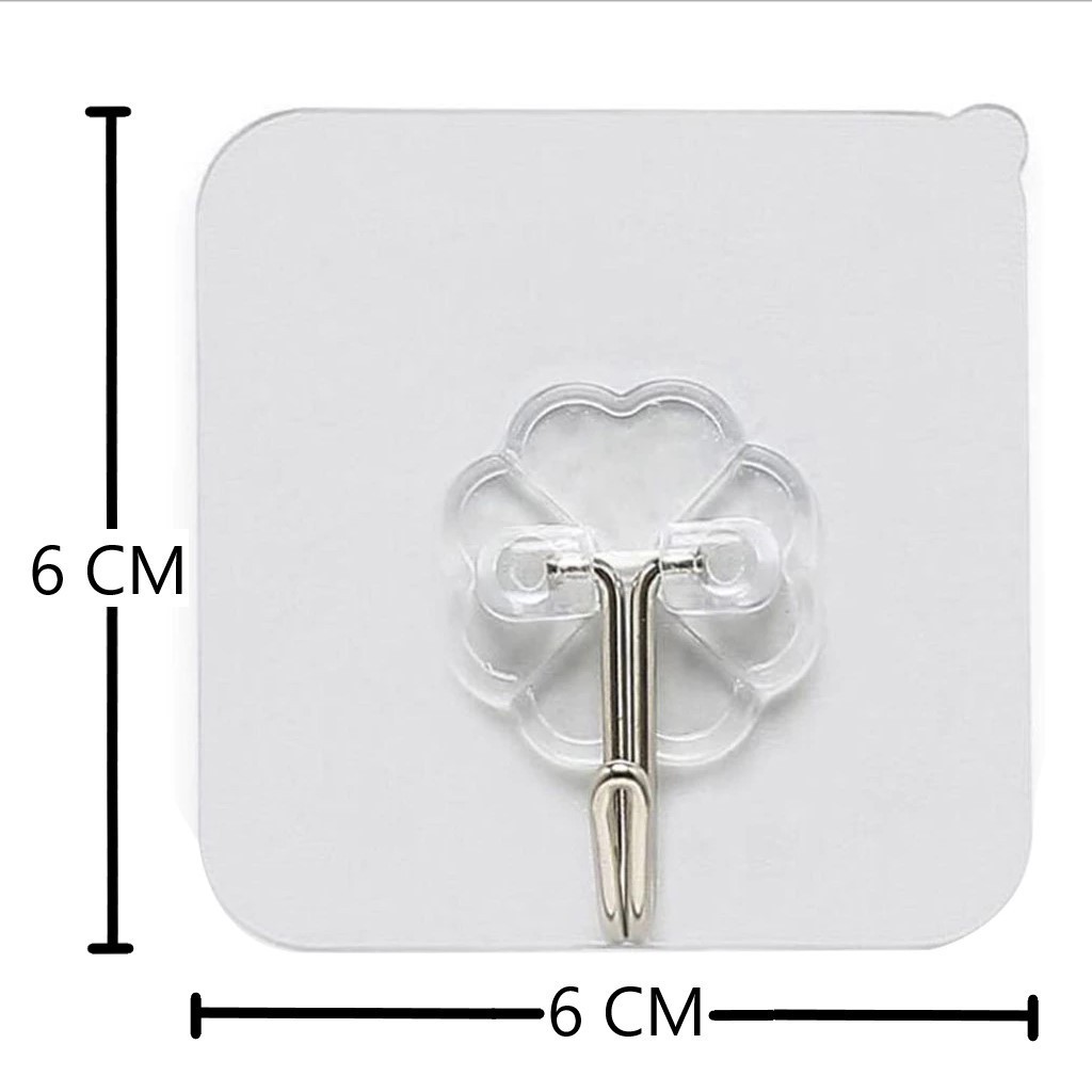 Pacote com 2 Ganchos Adesivo 6x6cm Transparente Autocolante Parede Casa Cozinha Quarto Multiúso