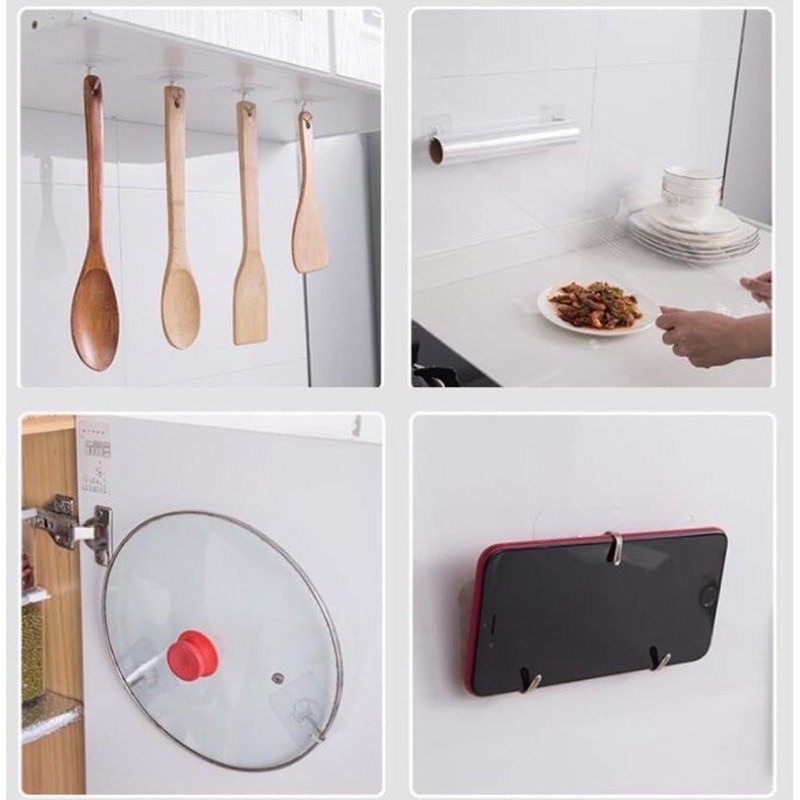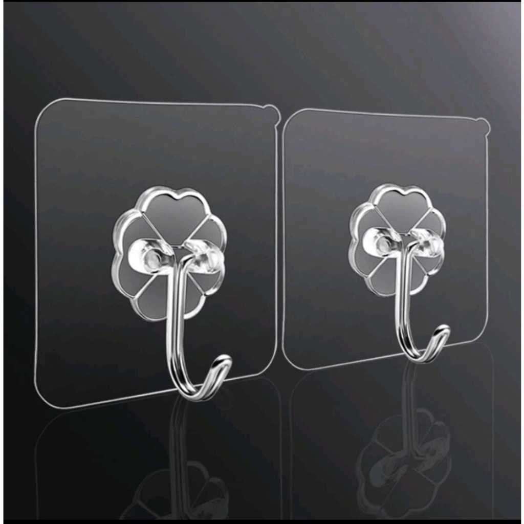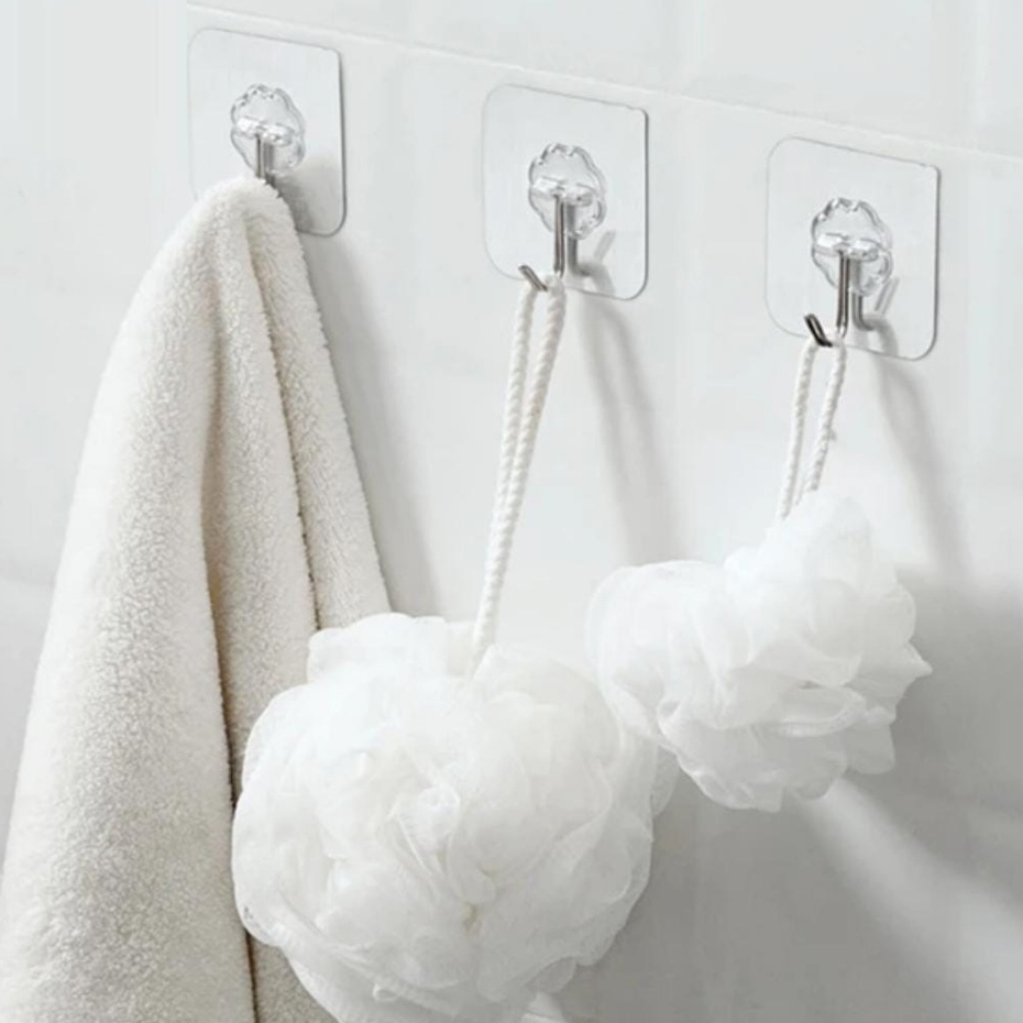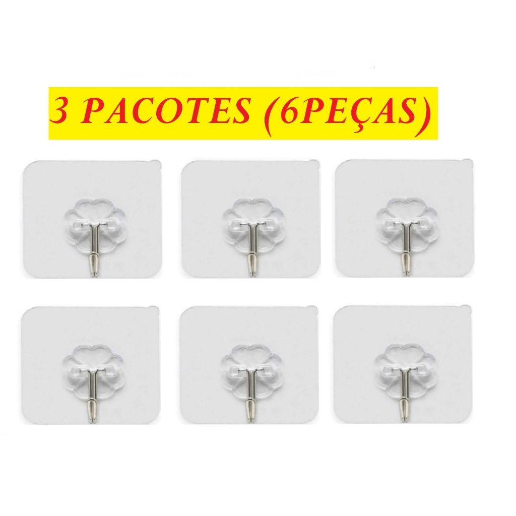 Pacote com 2 Ganchos Adesivo 6x6cm Transparente Autocolante Parede Casa Cozinha Quarto Multiúso