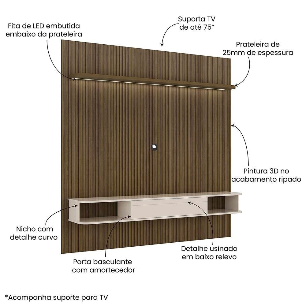 Painel Belluno para TV de até 75 Polegadas com 1 Prateleira e 2 Nichos Artely