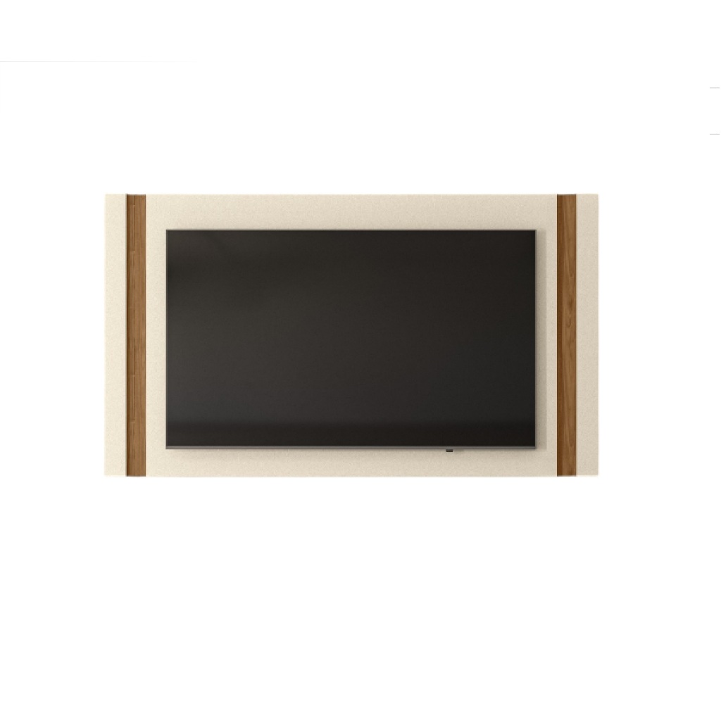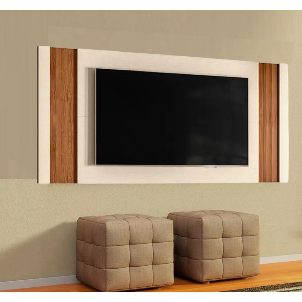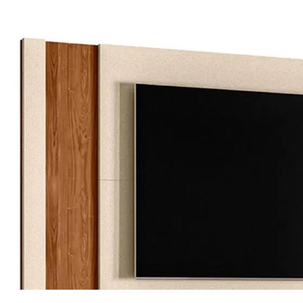 Painel MDP TV Até 60" Painel Real Cor Perola MetalizadoCom Detalhes Em Amêndoa Sala Moderna