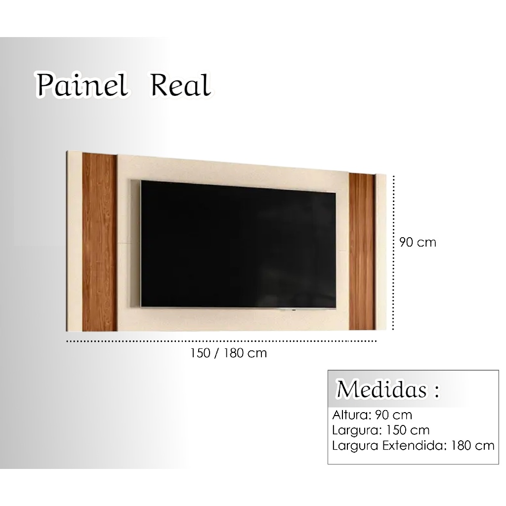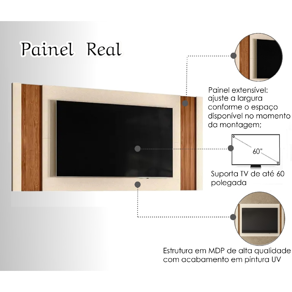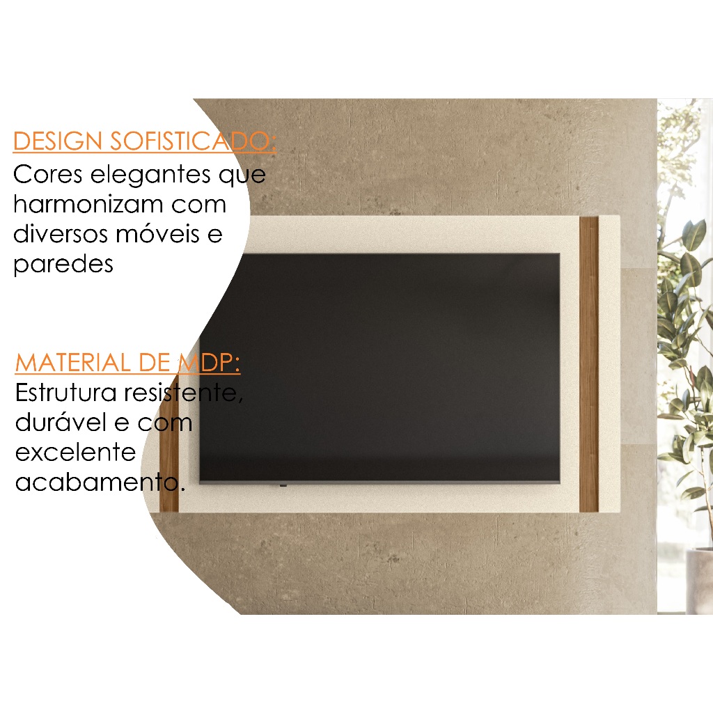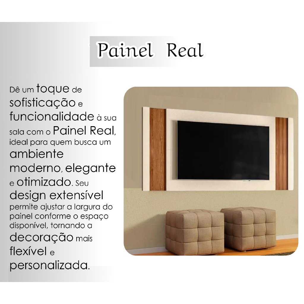 Painel MDP TV Até 60" Painel Real Cor Perola MetalizadoCom Detalhes Em Amêndoa Sala Moderna