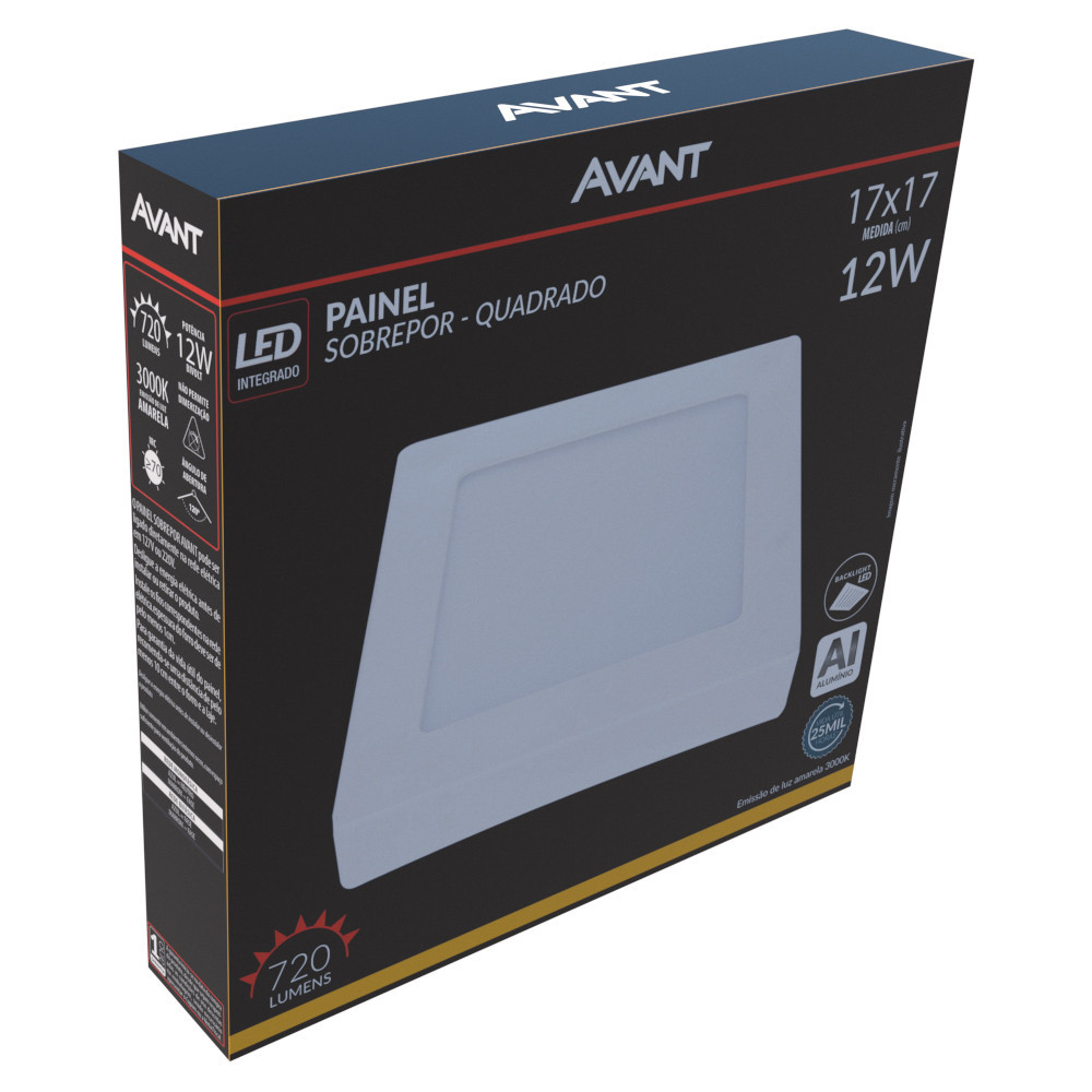 Painel Plafon Led Sobrepor 12W Quadrado Luz Amarela Avant