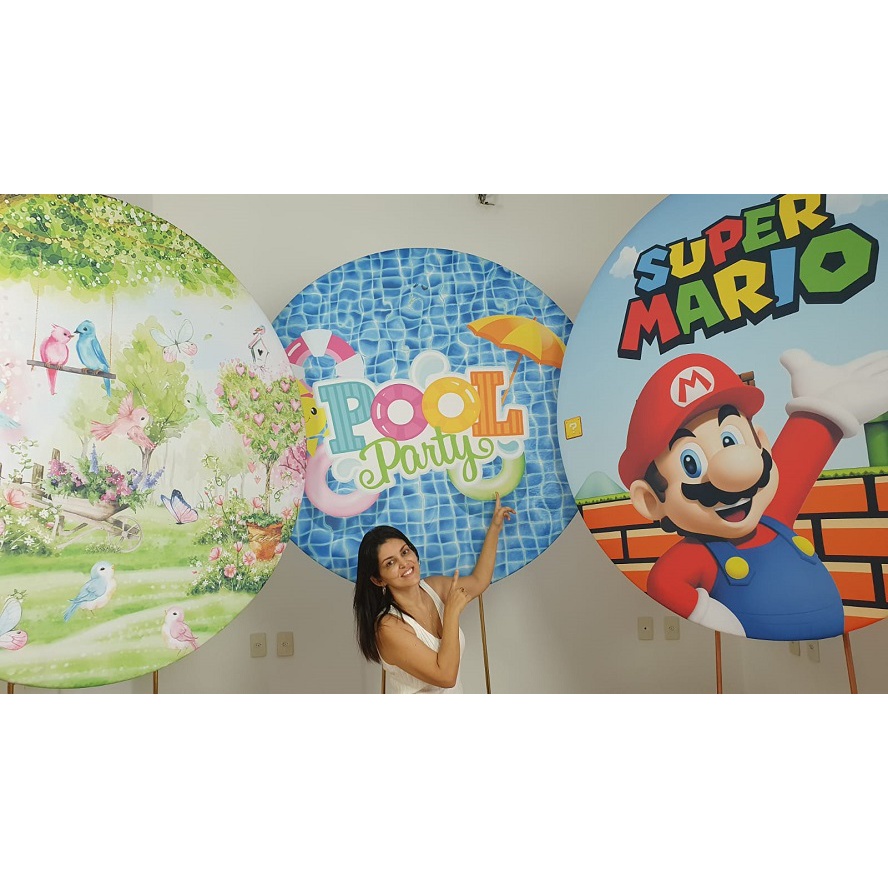 Painel Redondo Em Tecido Sublimado Meninas Super Poderosas Lindinha 1,50 mts