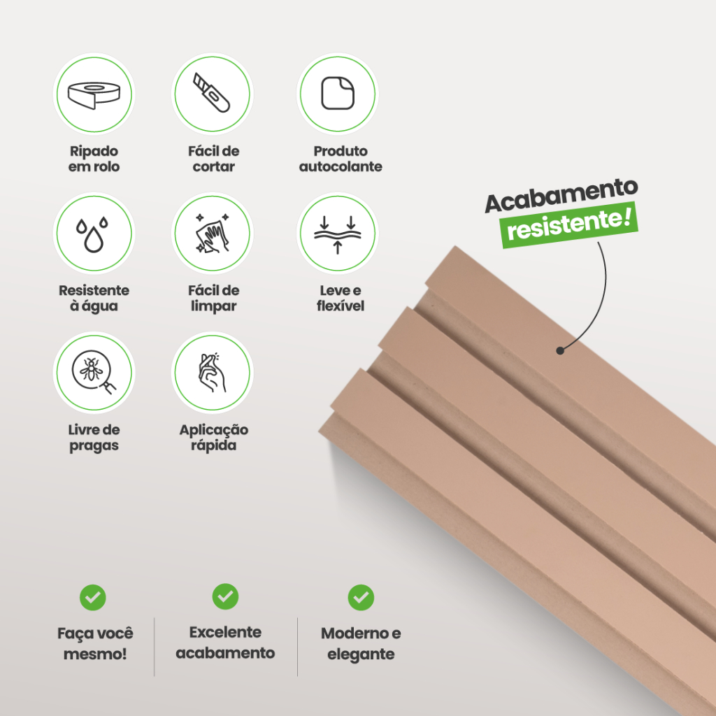 Painel Ripado Autocolante Linha Play Creme – Meu Rodapé | Parede Decorativa | Envio FULL
