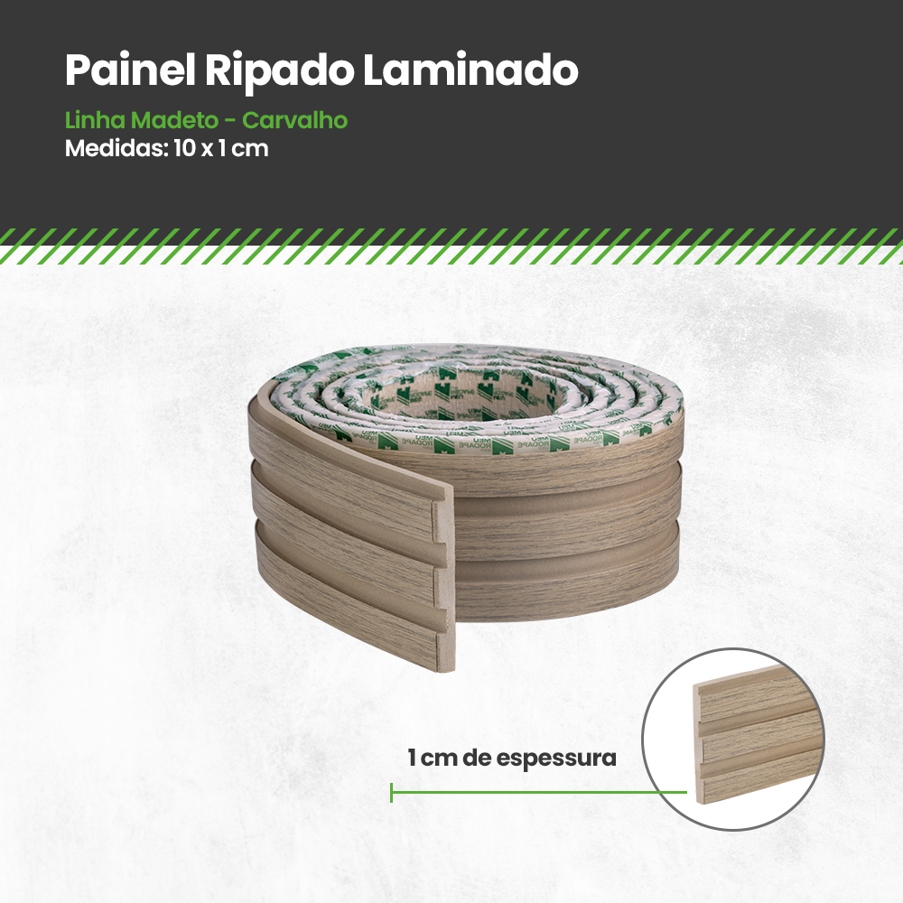 Painel Ripado EVA Laminado Autocolante 10cm Madeto Madeira 2,5 Metros