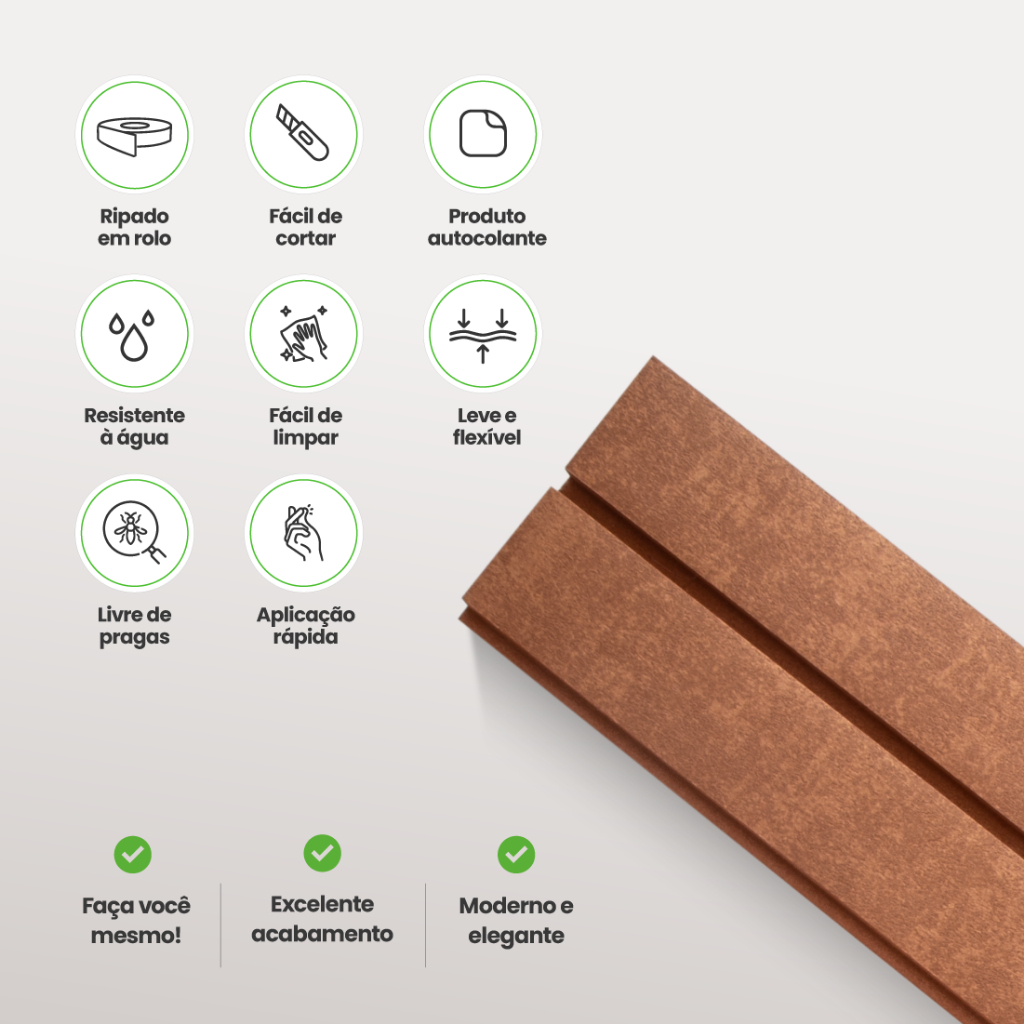 Painel Ripado Laminado de EVA Autocolante Linha Urban Plus Bronze – Meu Rodapé | Aplique Você Mesmo
