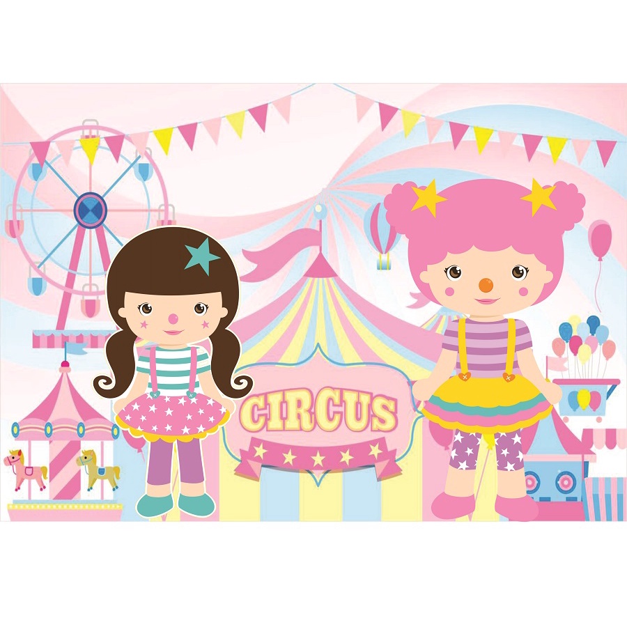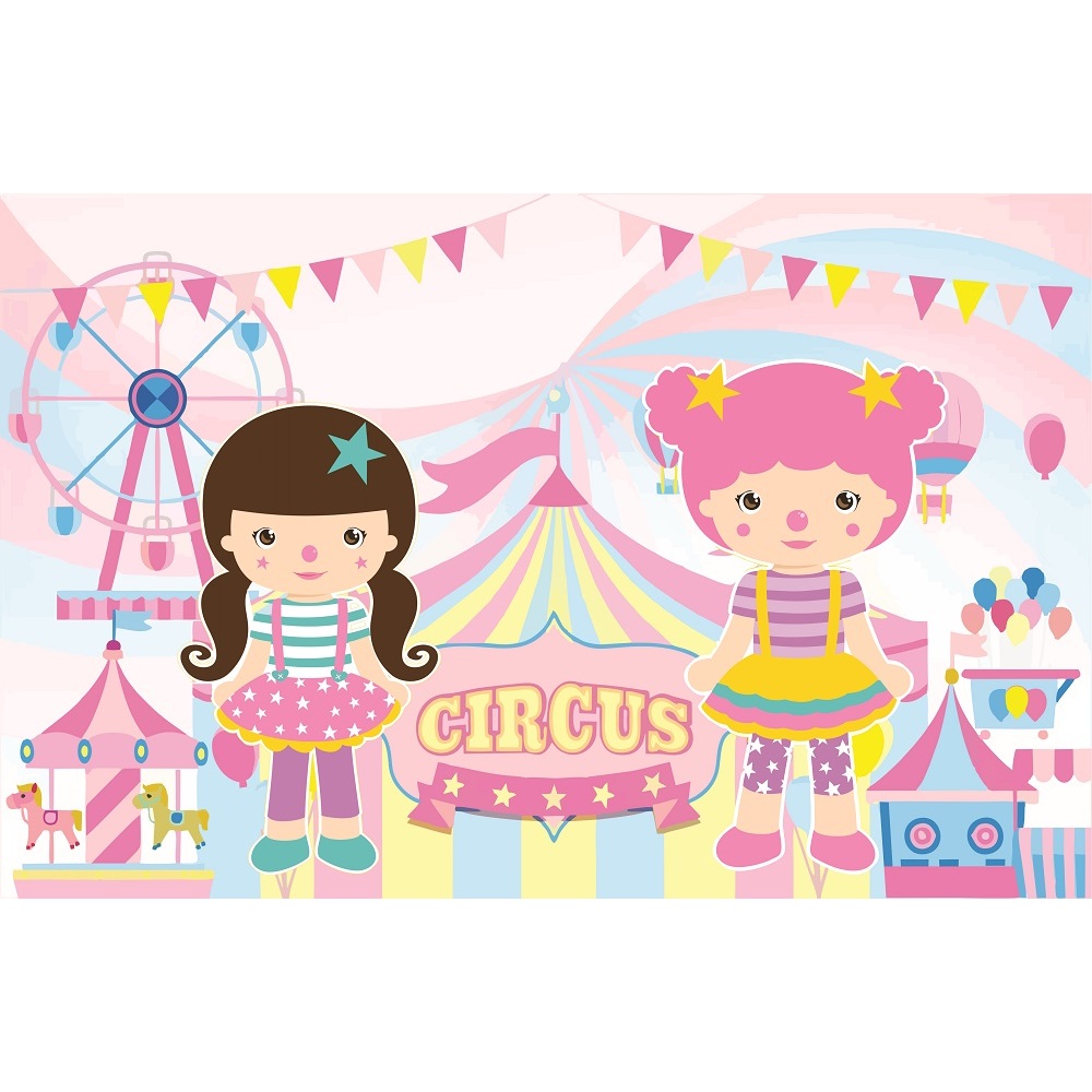 Painel em lona circo rosa festa e decoração
