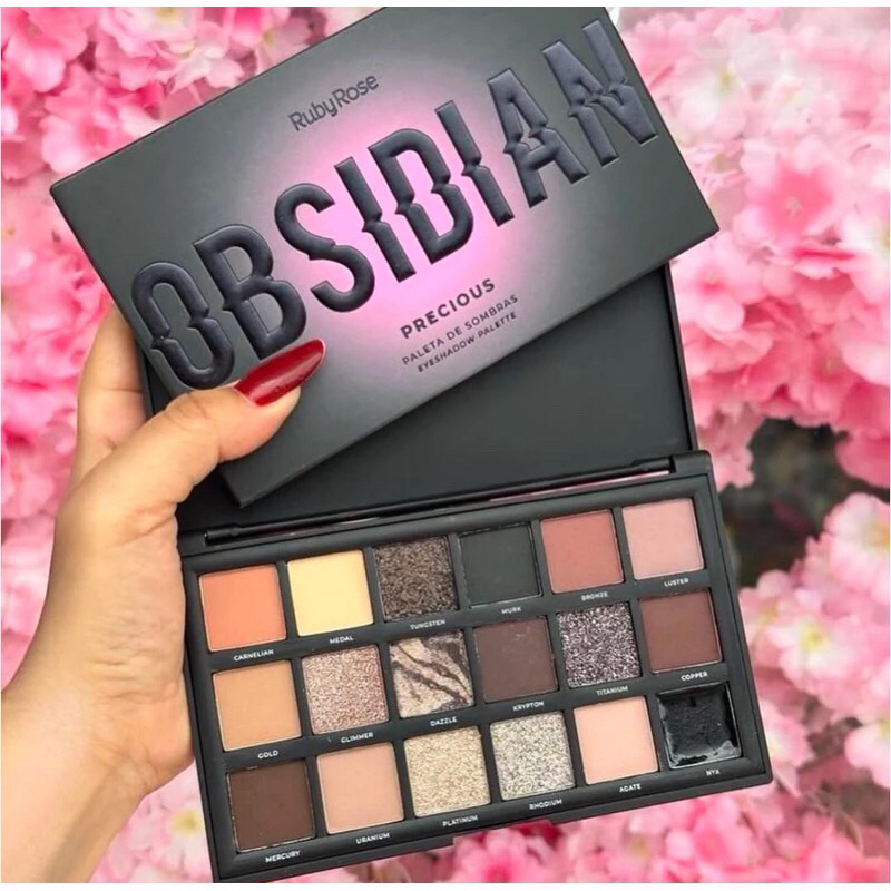Paleta de Sombras Ruby Rose Precious Obsidian - 18 Cores Intensas e Acabamento Profissional
