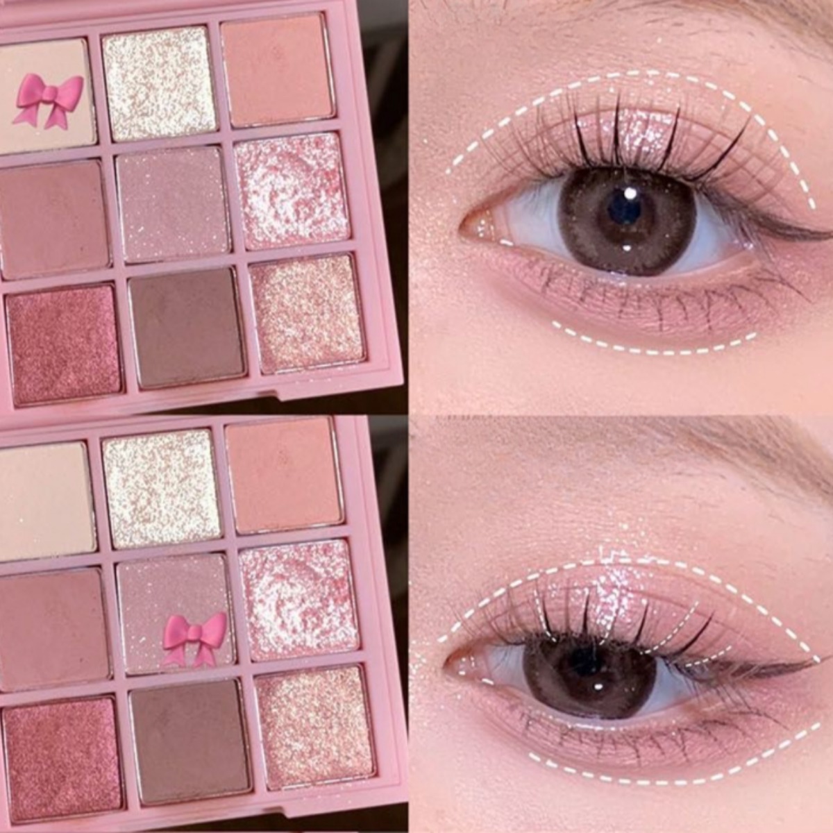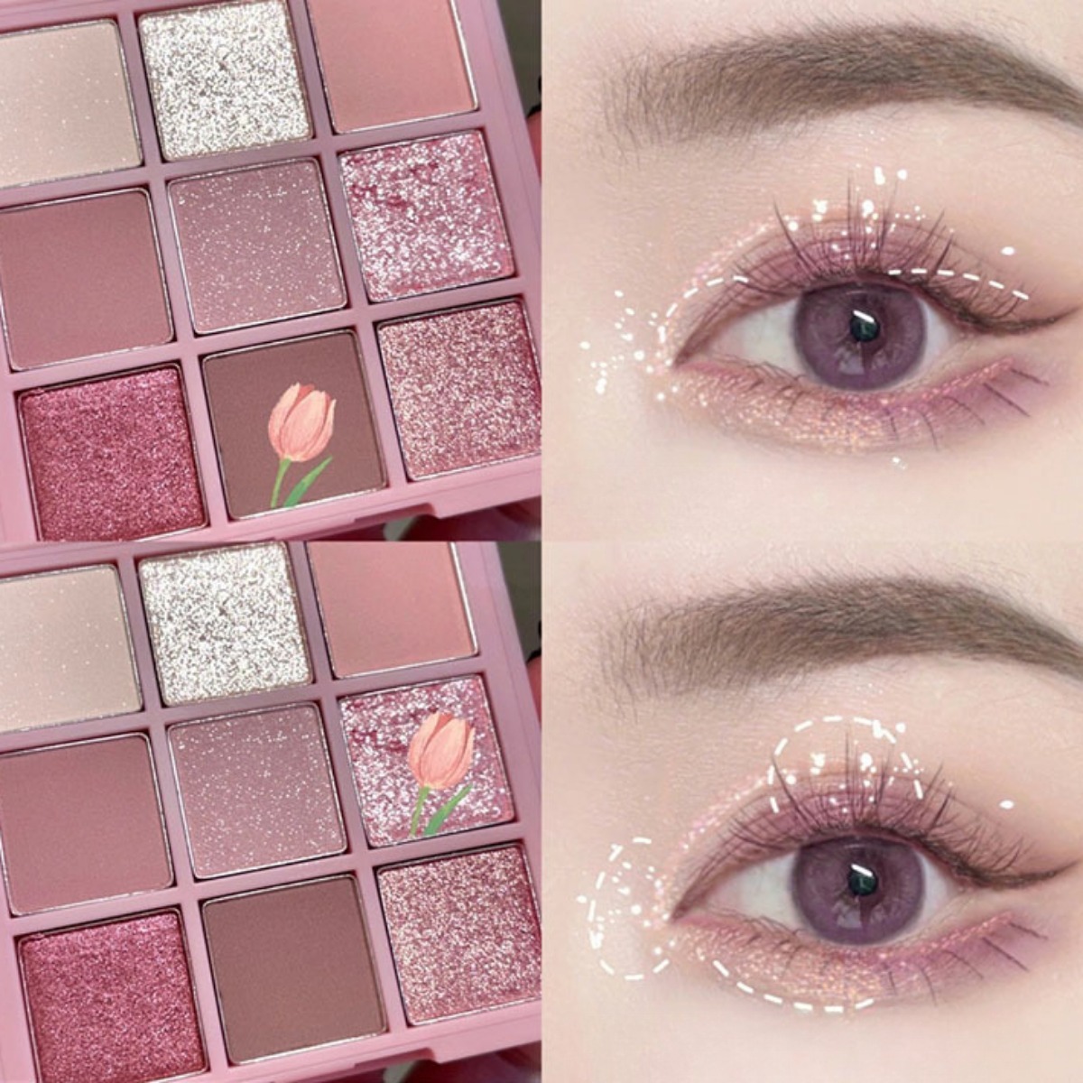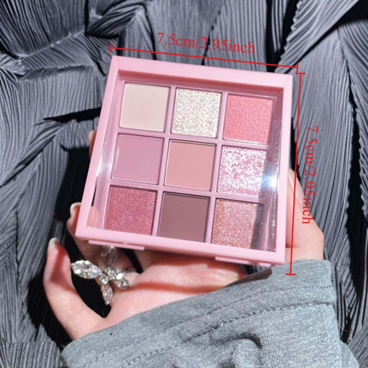 Paleta de Sombras de 9 Cores Rose Pink | Fosca e Brilho com Glitter | À Prova d’Água e Duradoura | Paleta de Sombra