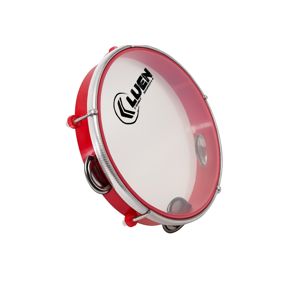 Pandeiro 8" ABS Plat. Inox Junior Infantil Pele Cristal Luen 40084 Vermelho