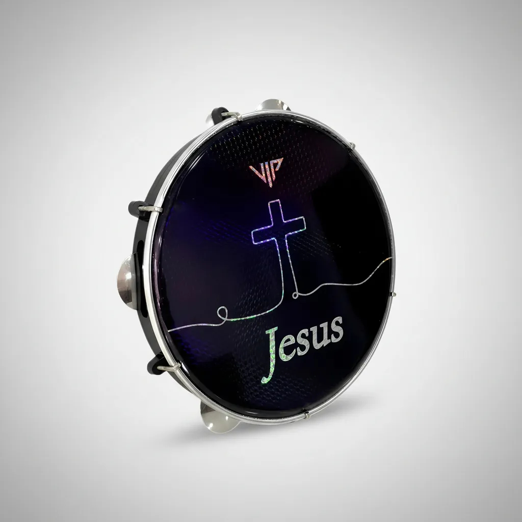 Pandeiro Profissional 10 Polegadas Pele Holográfica Jesus Corpo Abs