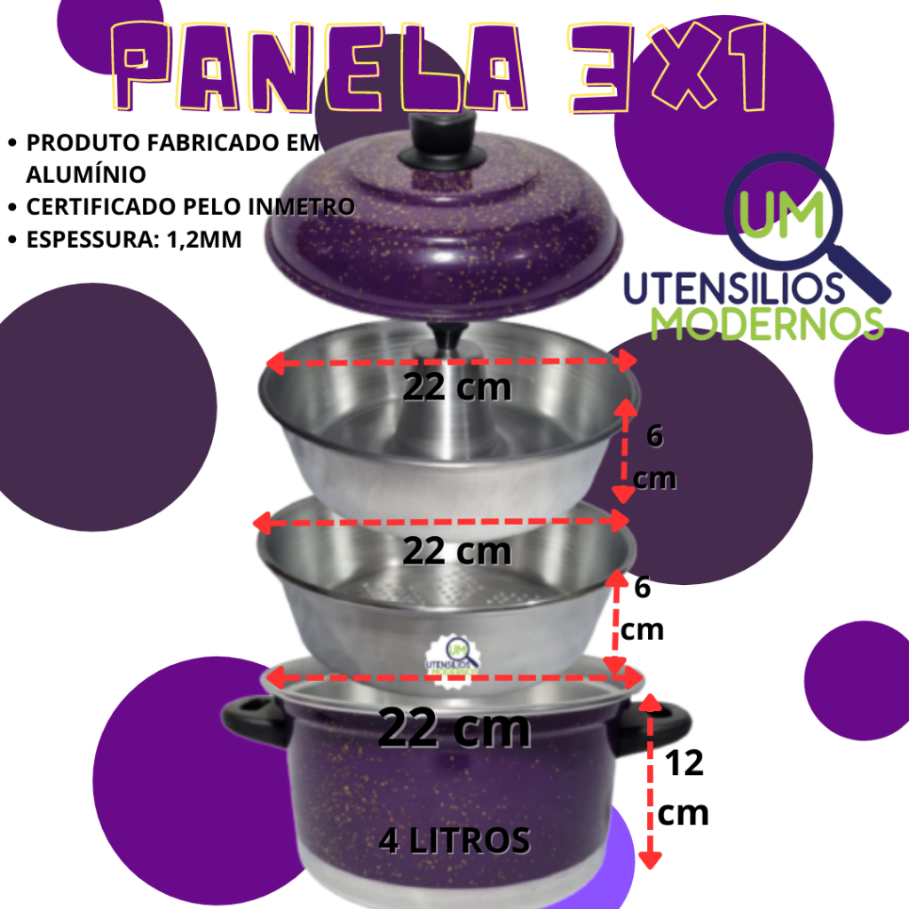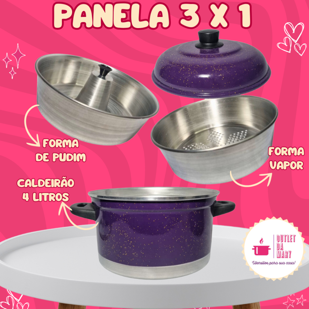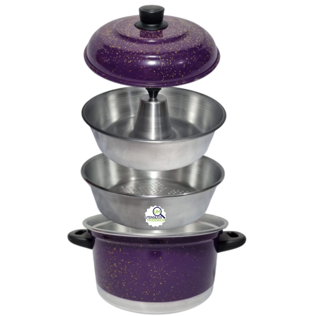 Panela 3 em 1 de Alumínio Cozivapor Roxo Pudim Vapor