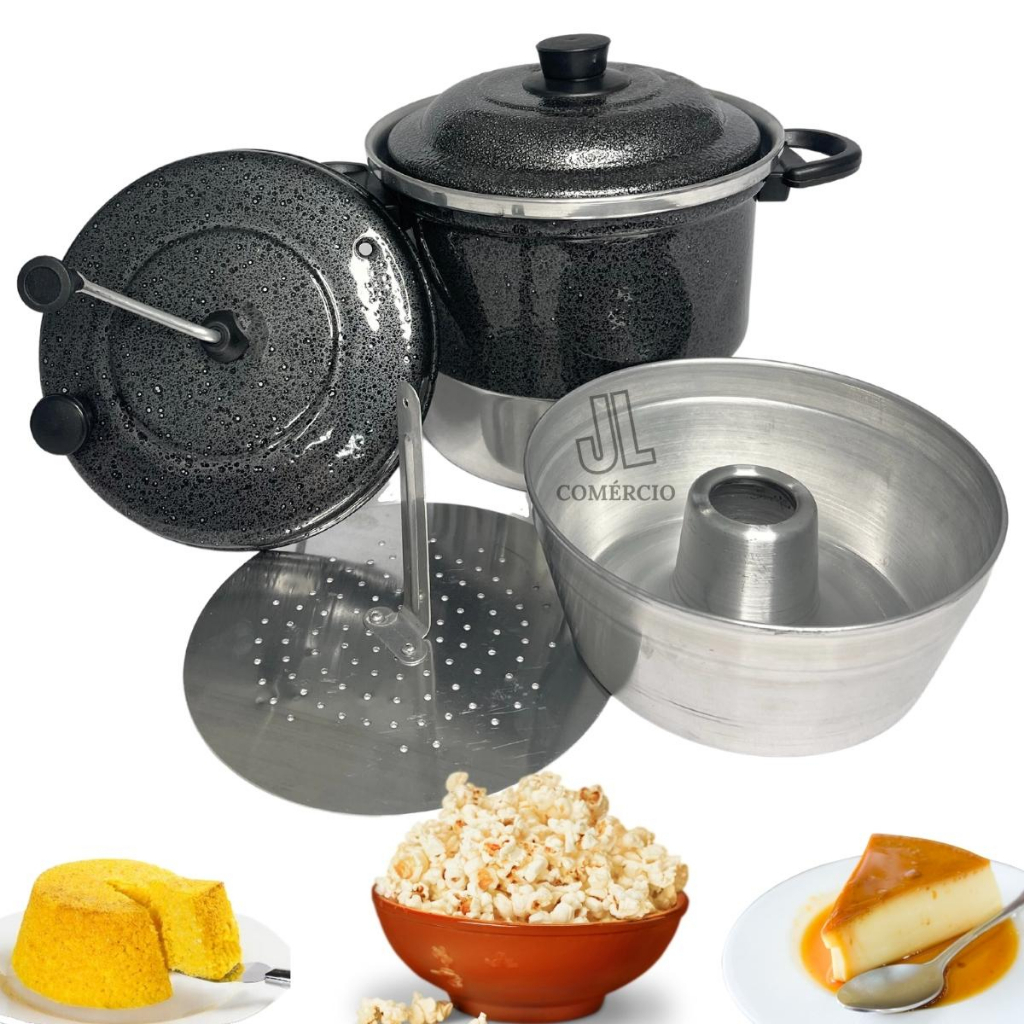 Panela 4 em 1 Multiuso Cuscuzeiro Caçarola Pipoqueira Pudim Banho Maria Faz Pipoca Cuscuz Alimentos a Vapor e Pudim