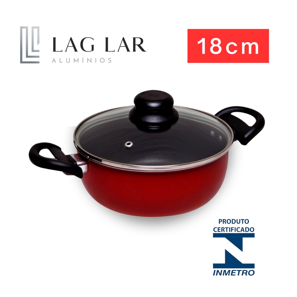 Panela Antiaderente Caçarola de Alumínio Vermelha e Preta Teflon 18cm Com Tampa de Vidro