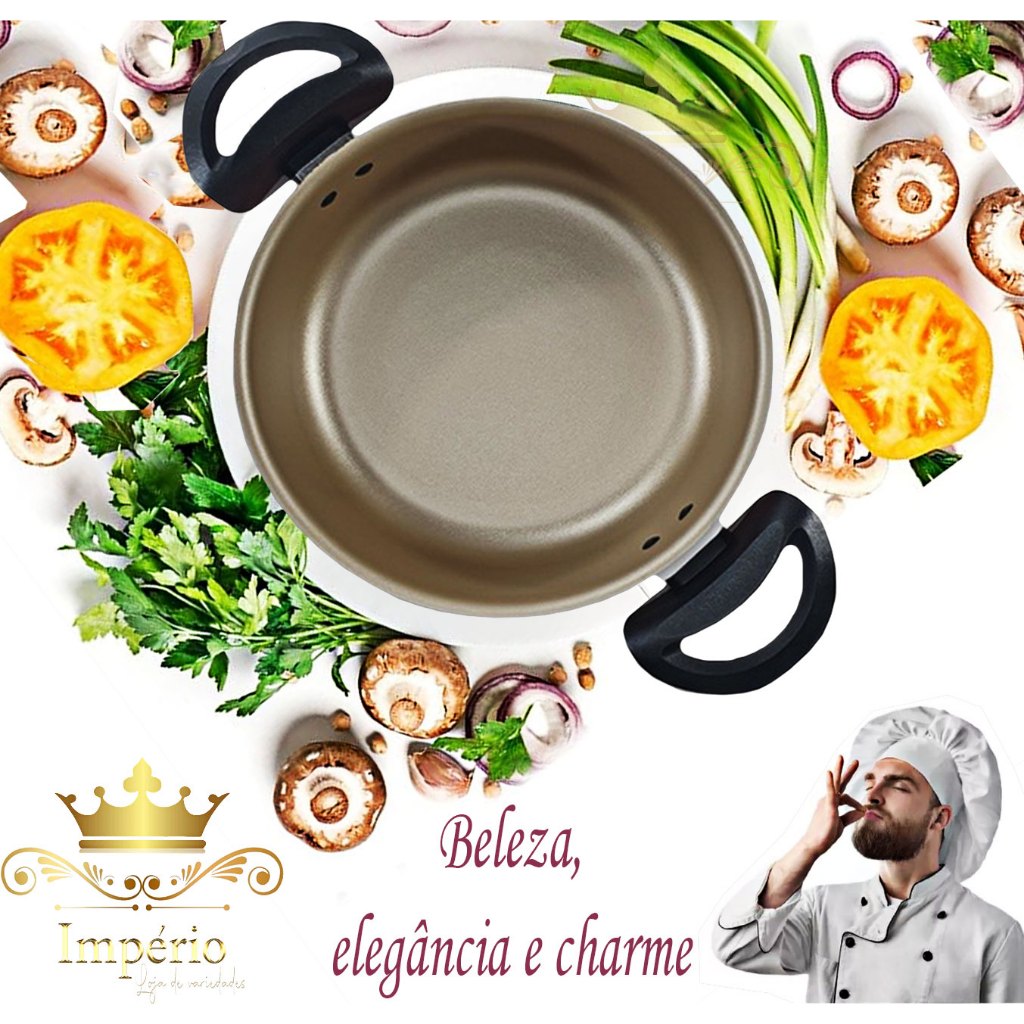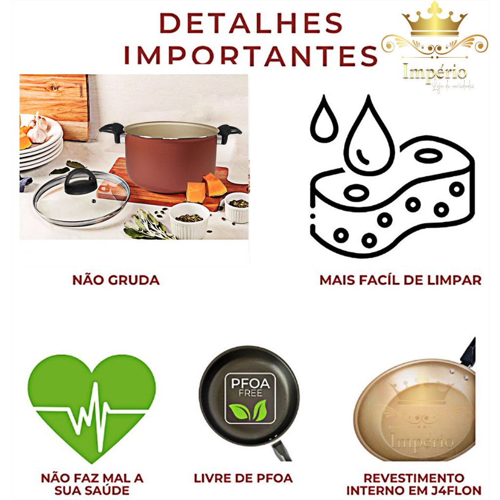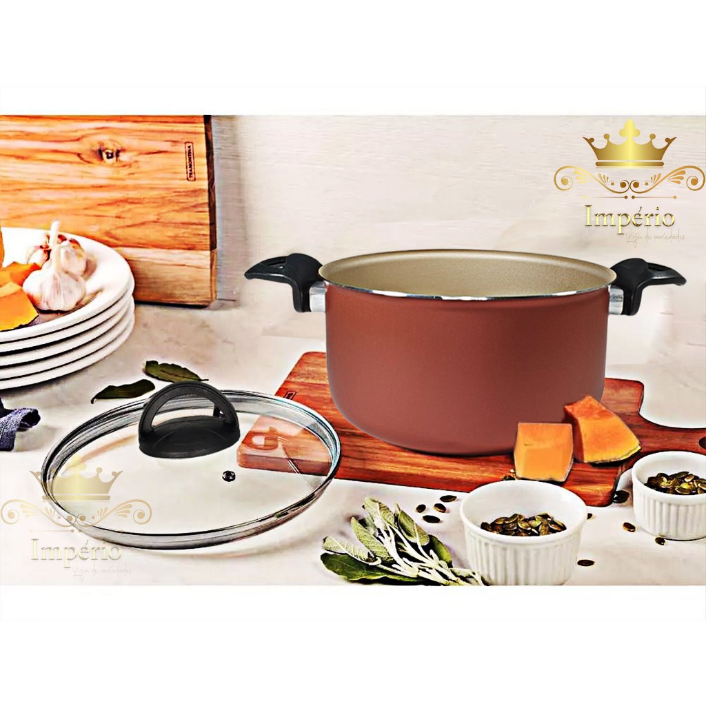 Panela Caçarola 16 cm com Tampa de Vidro Com Espátula Antiaderente 5 Camadas De Teflon Cor Cereja Gold Dourada Cobre Panela Avulsa Grande Com Utensilio