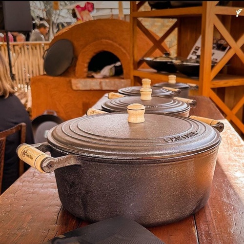 Panela Caçarola 28 Com Tampa Ferro Fundido Com Alça Madeira