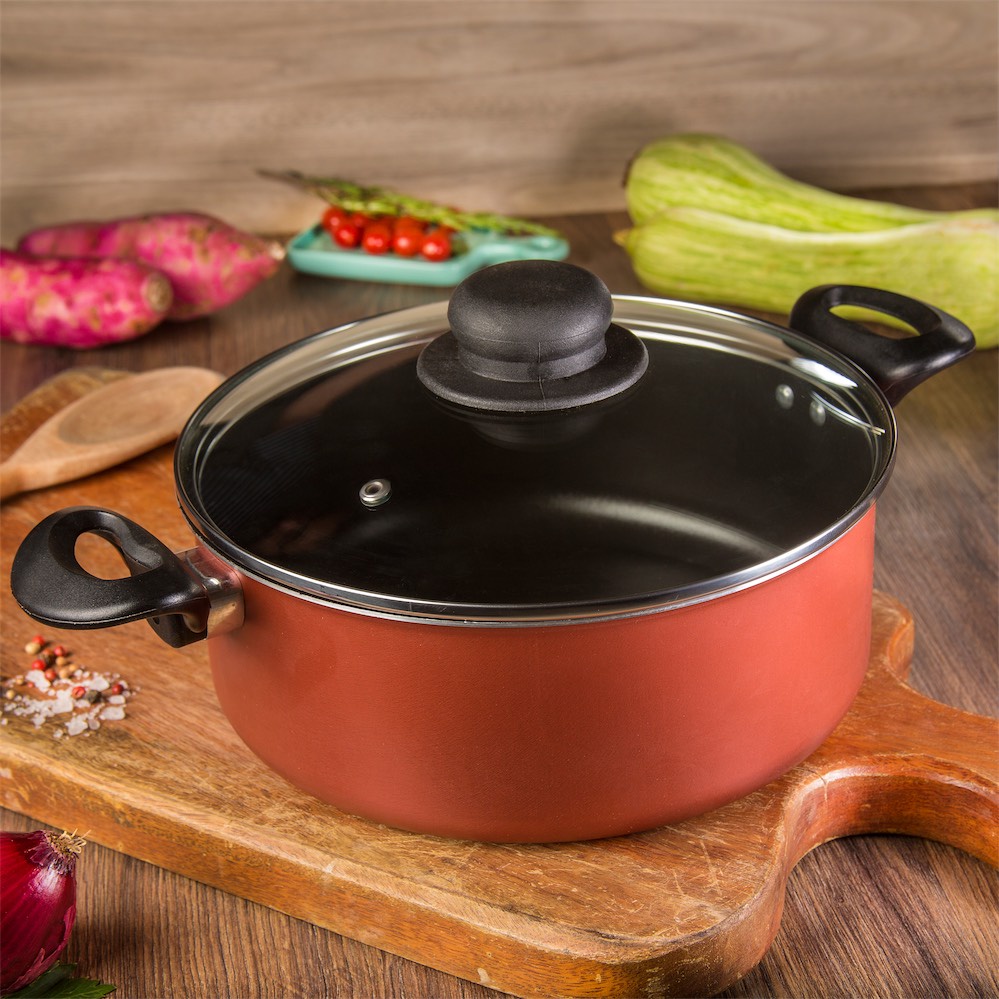 Panela Caçarola Antiaderente 3 Litros nº22 com Tampa de Vidro Temperada